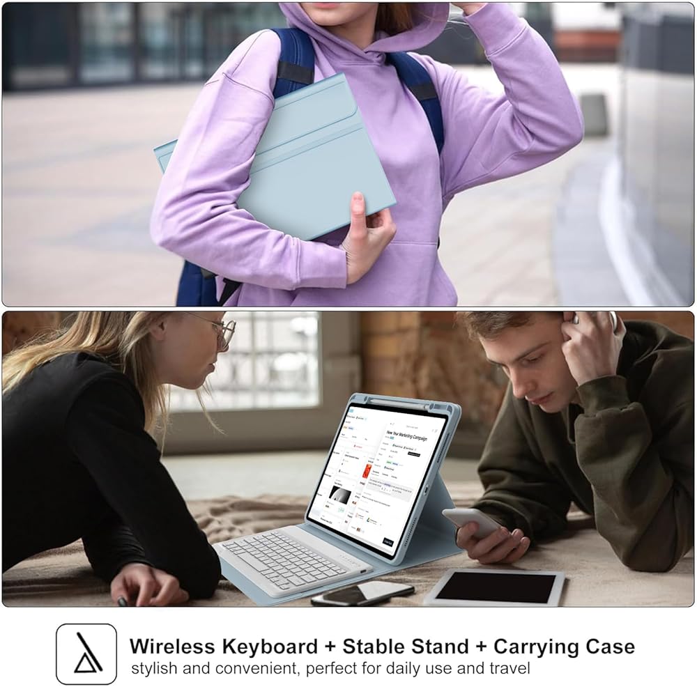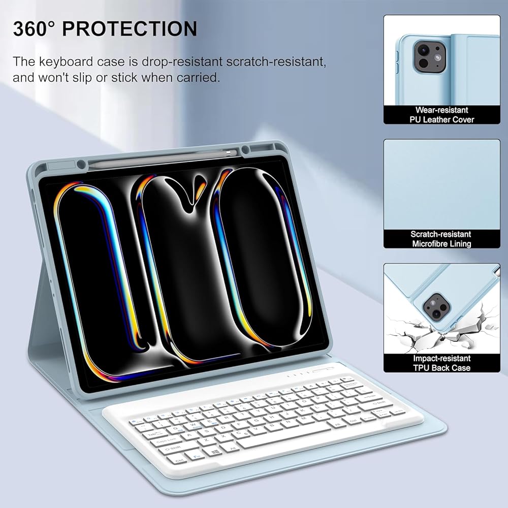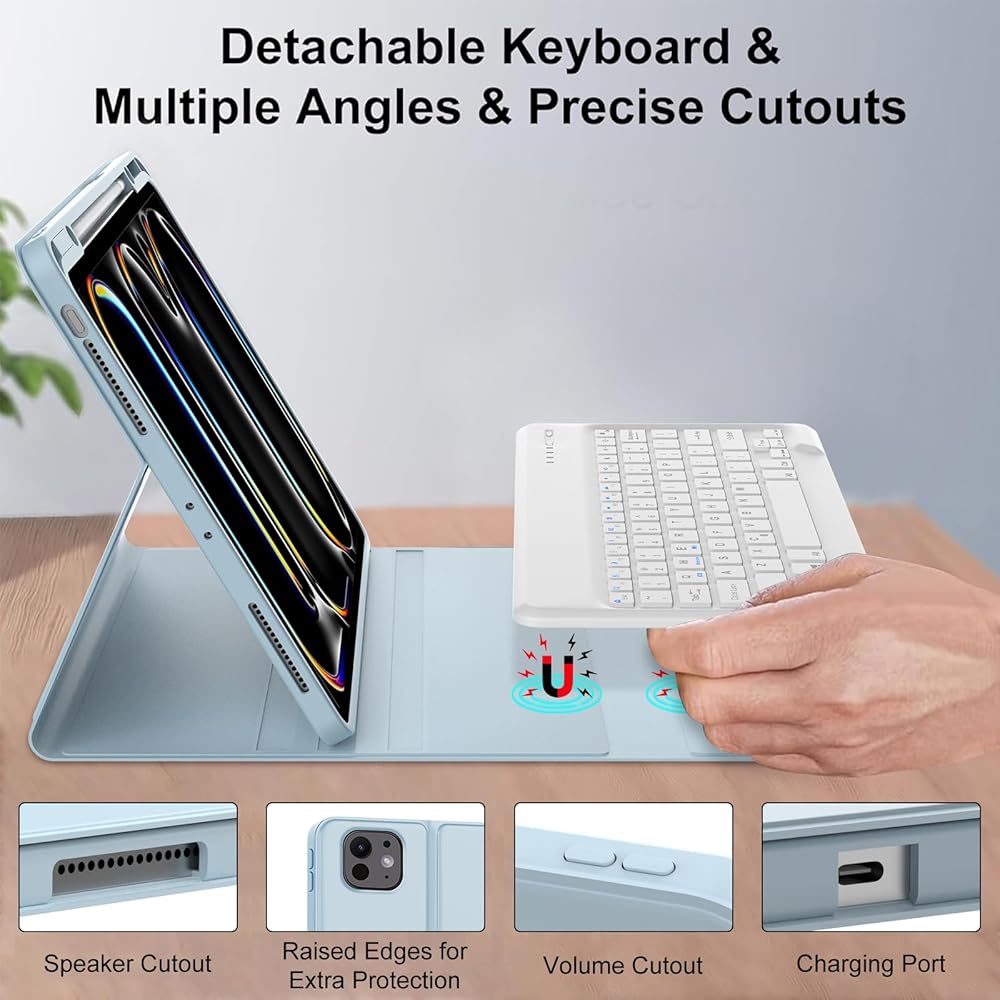 Keyboard case for iPad Pro 13 inch (M4, 2024), Detachable Wireless Bluetooth Keyboard, Smart Folio Cover with Pencil Holder for 13" iPad Pro (M4), Auto Sleep/Wake, Soft TPU Protective Cover, Sky Blue