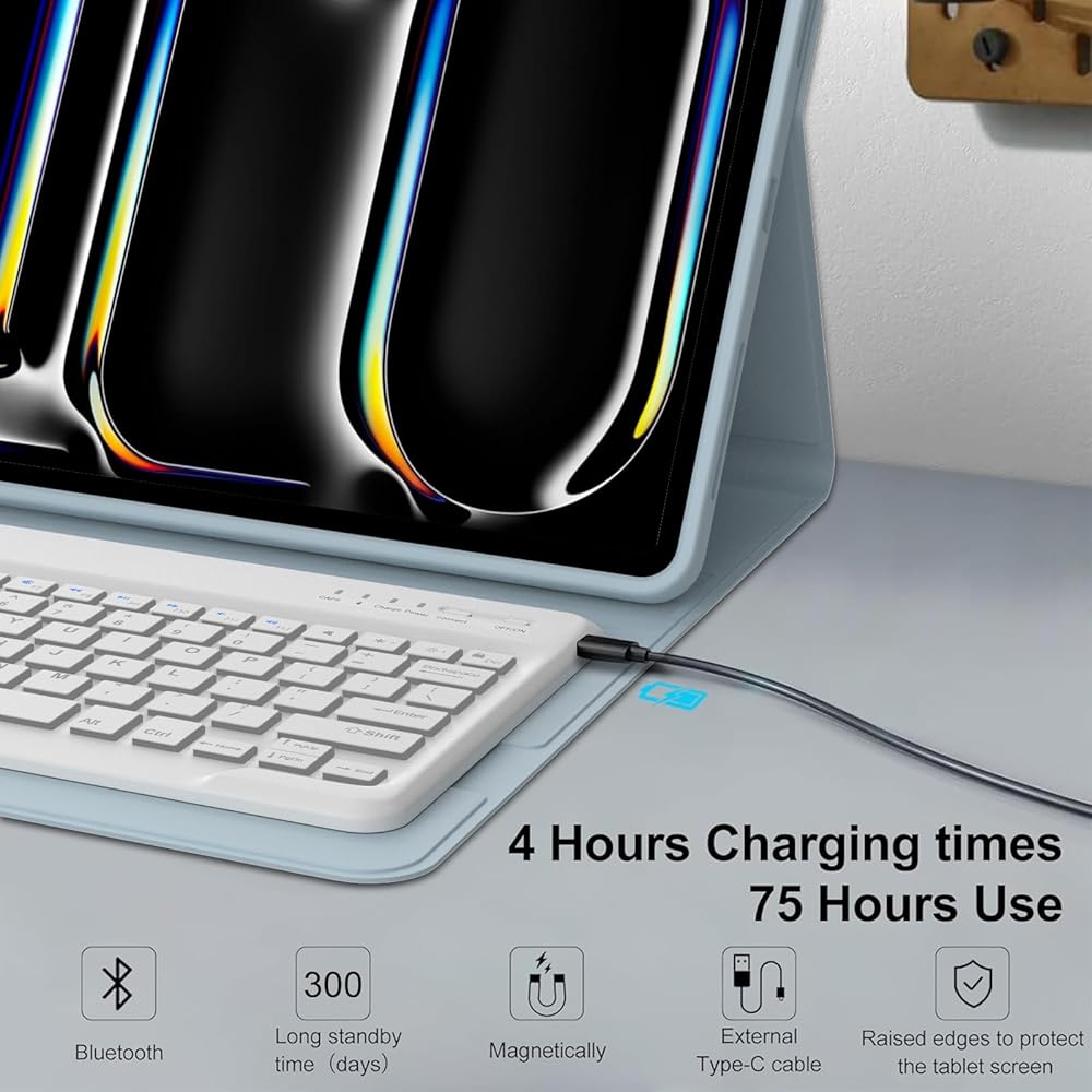 ✅LONG BATTERY LIFE - iPad Pro 13 inch case 2024 keyboard is equipped with a large-capacity battery, which only takes 3 hours to charge, can be used continuously for 5 hours with the backlight turned on, and can be used continuously for 15 days with the backlight turned off.