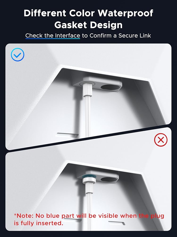 [No Blue Part, No Hassle] Features a unique different color design with special blue waterproof gasket serves as connecting reminder. Ensures full insertion of connector for reliable connection and stable use. When the blue part is not visible, the connection is perfect and ready for uninterrupted data transimission.