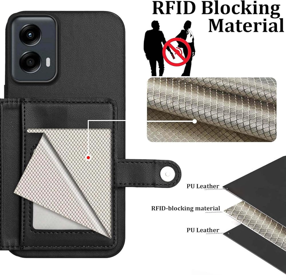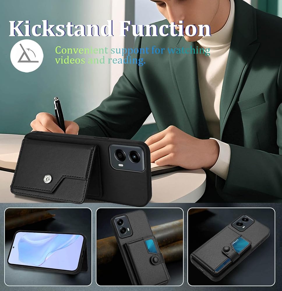 [RFID Blocking for Motorola Moto G 5G 2024 Case] Our for Moto G 5G 2024 card holder case by advanced RFID-blocking material technology to effectively block sensitive signals and protect your personal information.[Kickstand Function]: Adjustable Viewing Angles,Can be converted easily into a stand,freely and relaxed to enjoy video, movies, Face Time, E-book, Pictures, etc