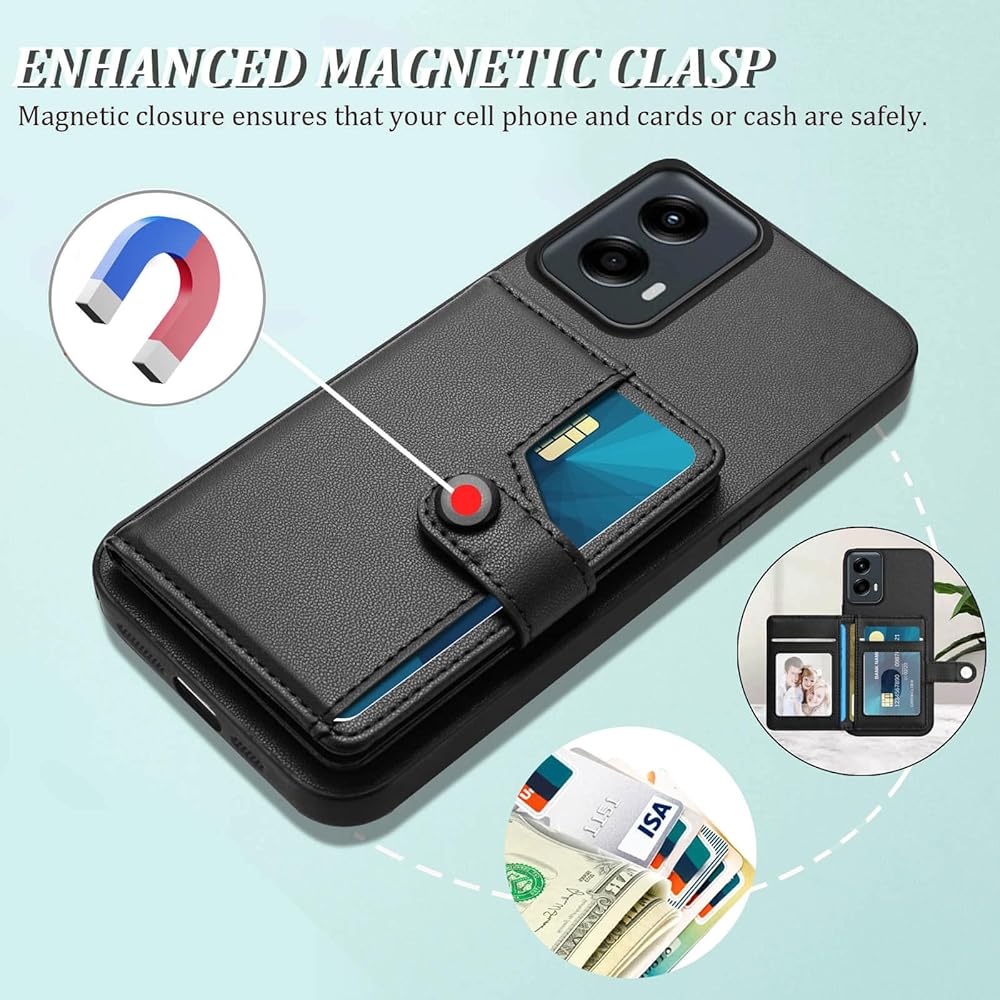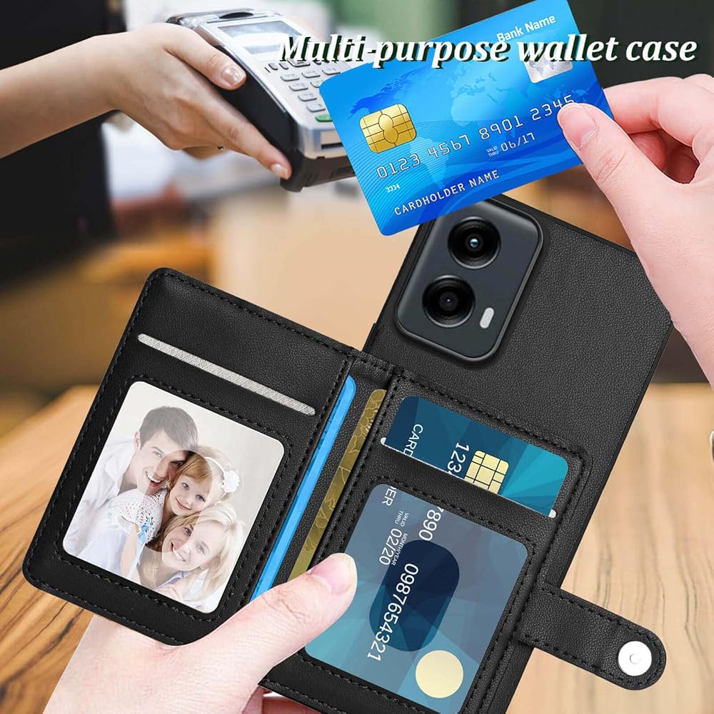 For Moto G 5G 2024 Case with Card Holder Multiple Designed: 5 card slots to help you store membership cards, ID card, driving license, credit cards, family, lovers or child's photo; and several cash.Don't need to carry an extra wallet anymore. Enhanced Magnetic Clasp - Magnetic closure ensures that your cell phone and cards are safely.Suitable for Everyday life, Travel and Business trip