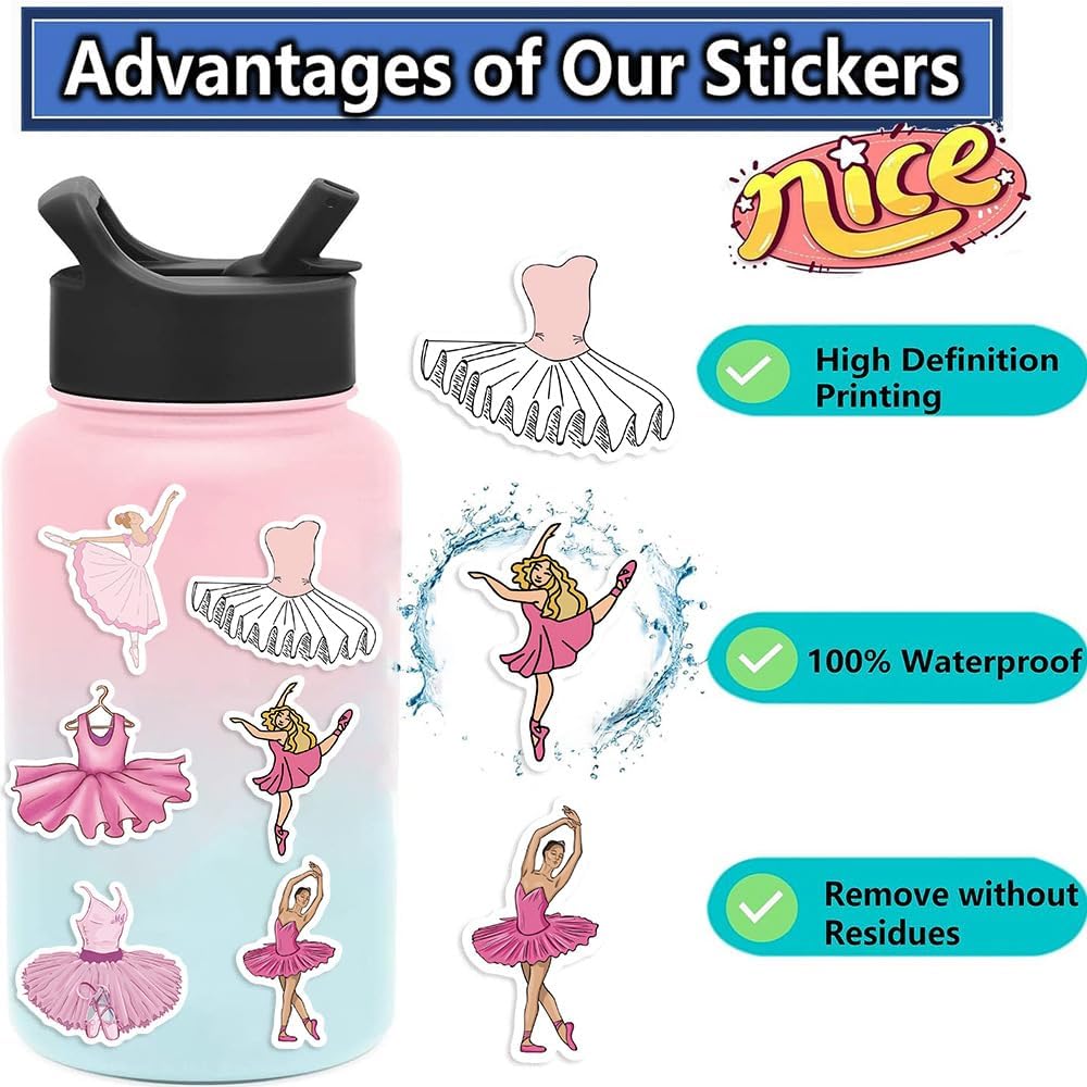 Material: All Ballet Stickers for hydroflasks are made of high-quality vinyl, with good sun protection and waterproof function, which can maintain bright colors for a long time.