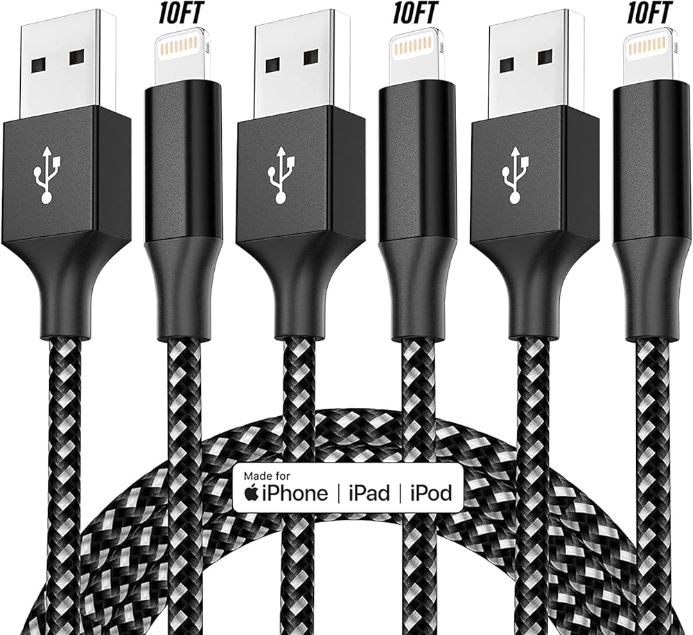 【Perfect length & Simple Color】: Indulge yourself of our three black lightning cable, each boasting an perfect length of 10 feet. With this 10 feet length, you have the freedom to charge your device wherever you desire. And our cables feature reinforced joint designs that have successfully withstood numerous bending tests.