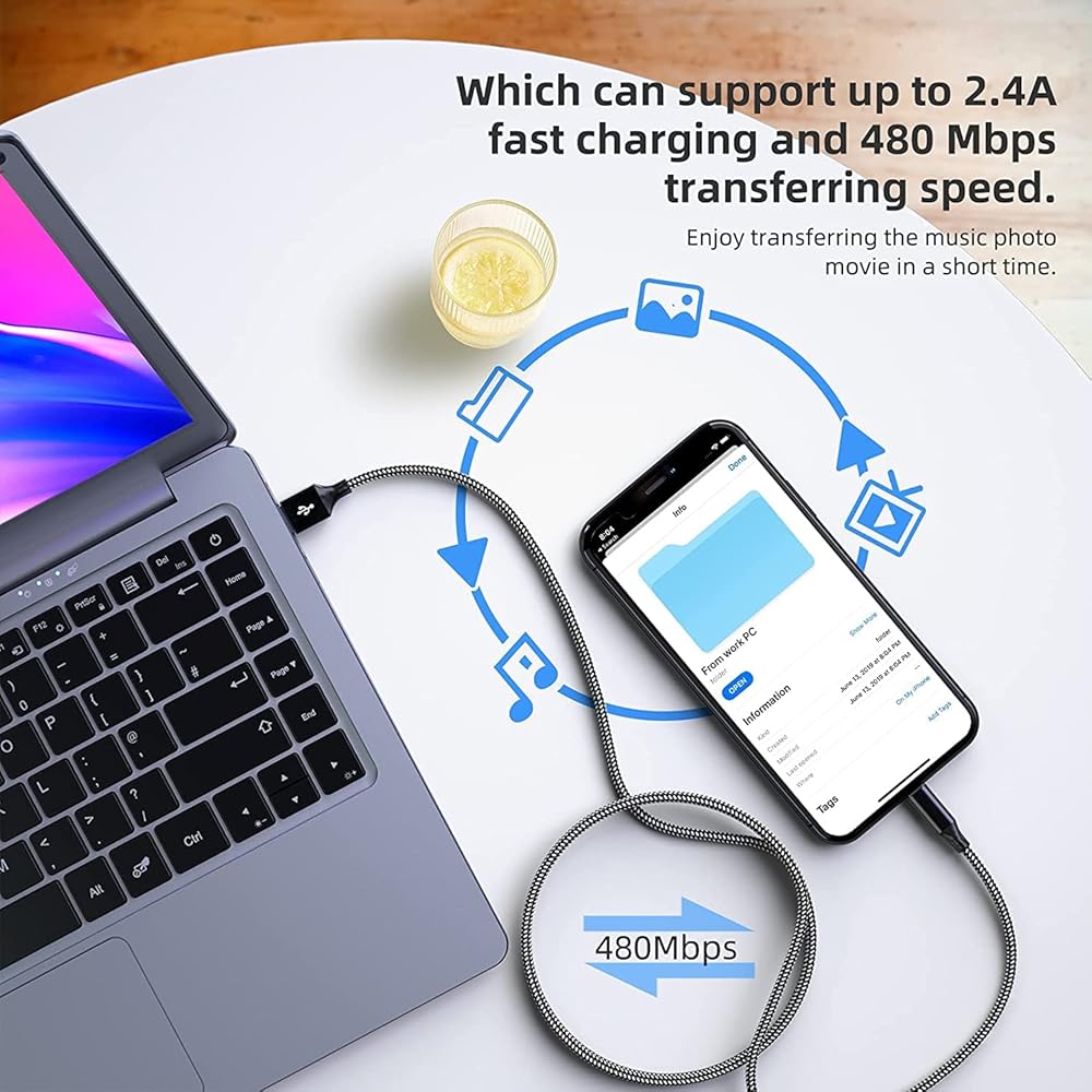 【High-Speed Charging&Transmission】: Our charging cable is designed with top-quality materials, featuring a high-purity copper core and intelligent chip that ensuring both your safety and the longevity of your device. With the capability to support up to 2.4A fast charging and 480 Mbps transfer speed, our cable offers lightning-fast charging and syncing.