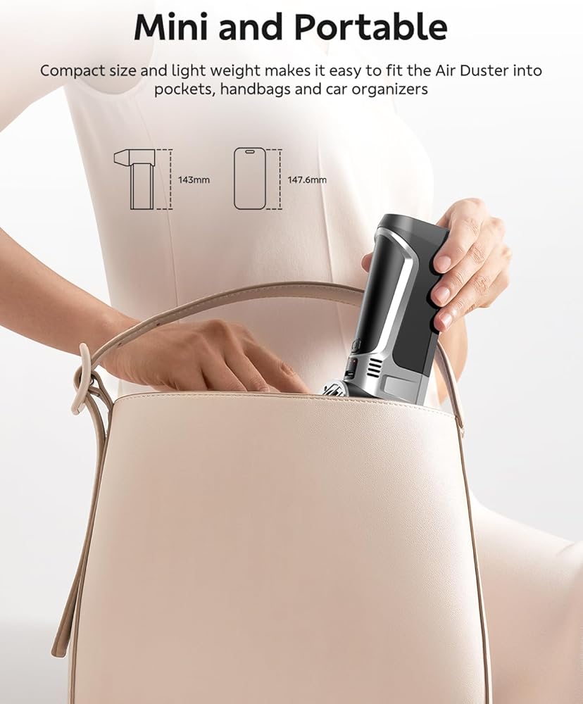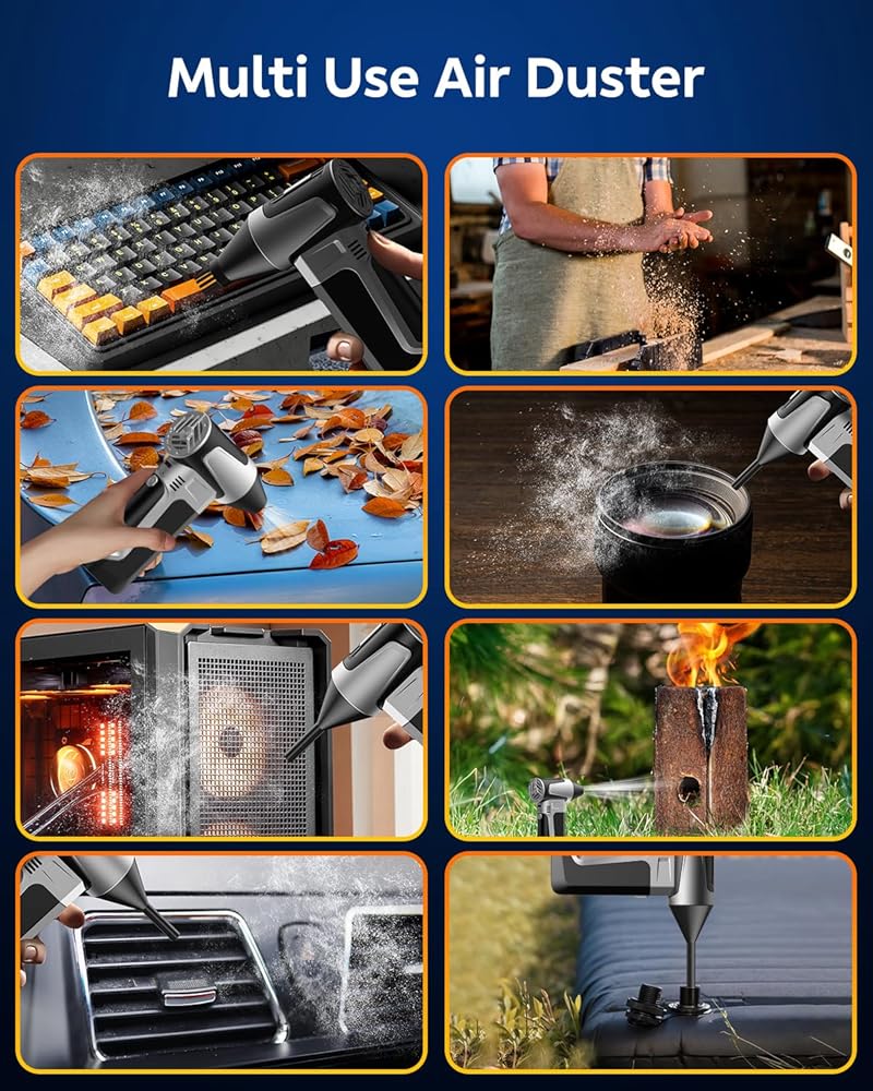 Eco-Friendly Alternative to Compressed Air Cans: Say goodbye to disposable air cans. This electric air blower is a sustainable, cost-effective solution for dusting electronics, cars, and household items. Recharge it anytime and enjoy powerful, ongoing performance without waste.