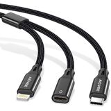 AGVEE 5ft USB-C Male to Lightning Female Charging Adapter Cable for Apple Pencil 1st Generation, 2 in 1 Charger Cord Enables Apple Pencil Pen 1st Gen Match iPad 10, Dark Gray
