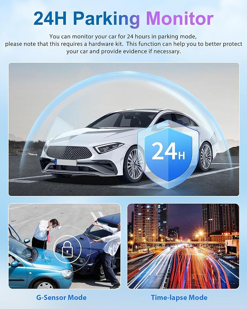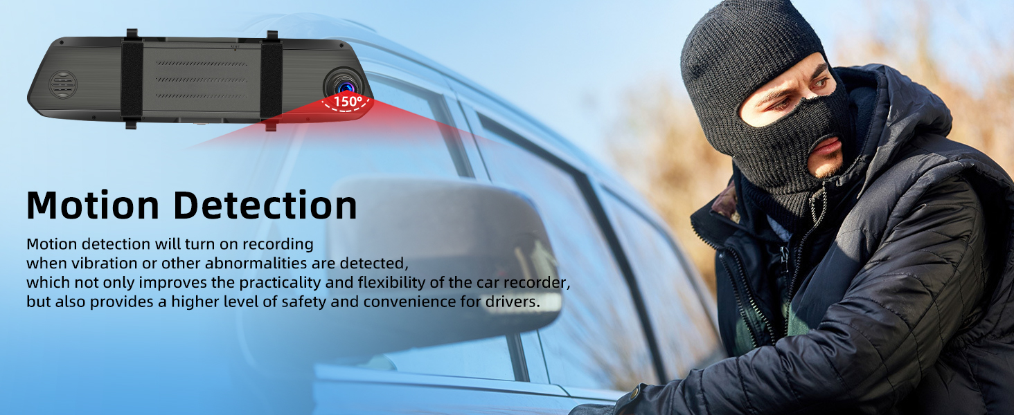 【24H Parking Monitor & Loop Record】The 24-hour parking monitor only works on an external power supply. After parking, you can set a time within 24 hours to monitor everything around the vehicle according to your needs. Mirror Car Camera with Loop Recording allows continuous recording even if the memory card reaches full capacity, the device will receive and automatically overwrite the old file.