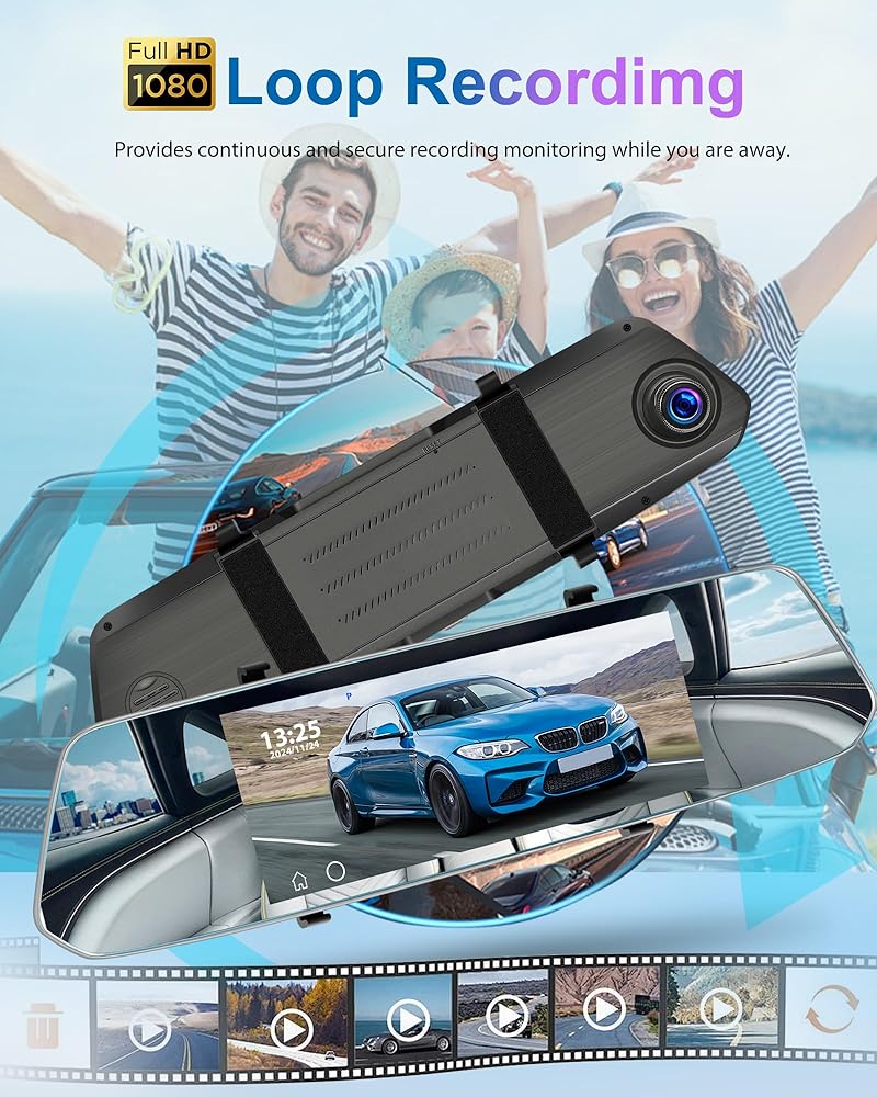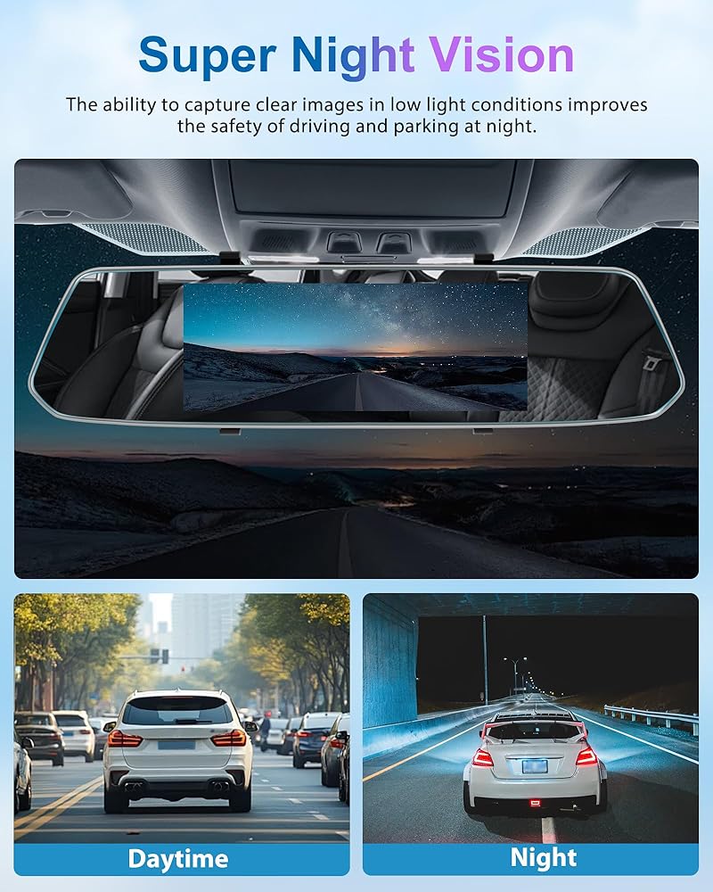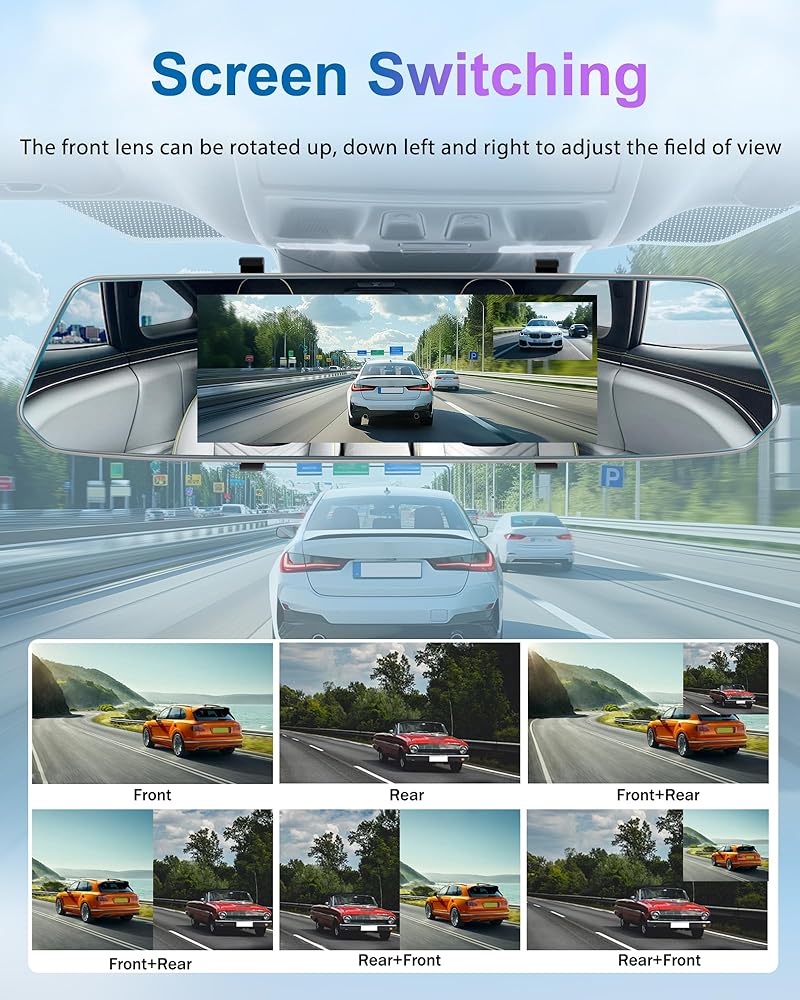 【Neat Functionality & Easy Installation】This 12" touchscreen smart rear view mirror dash cam supports loop recording, view angle adjustment, split-screen display, sound recording, screen saver, and brightness adjustment, very convenient to use, and this universal digital rear view mirror is also easy to install, no matter what the car model, it only takes 20-30 minutes to fix the mirror dashcam and connect the power cable and rear camera to complete the installation.