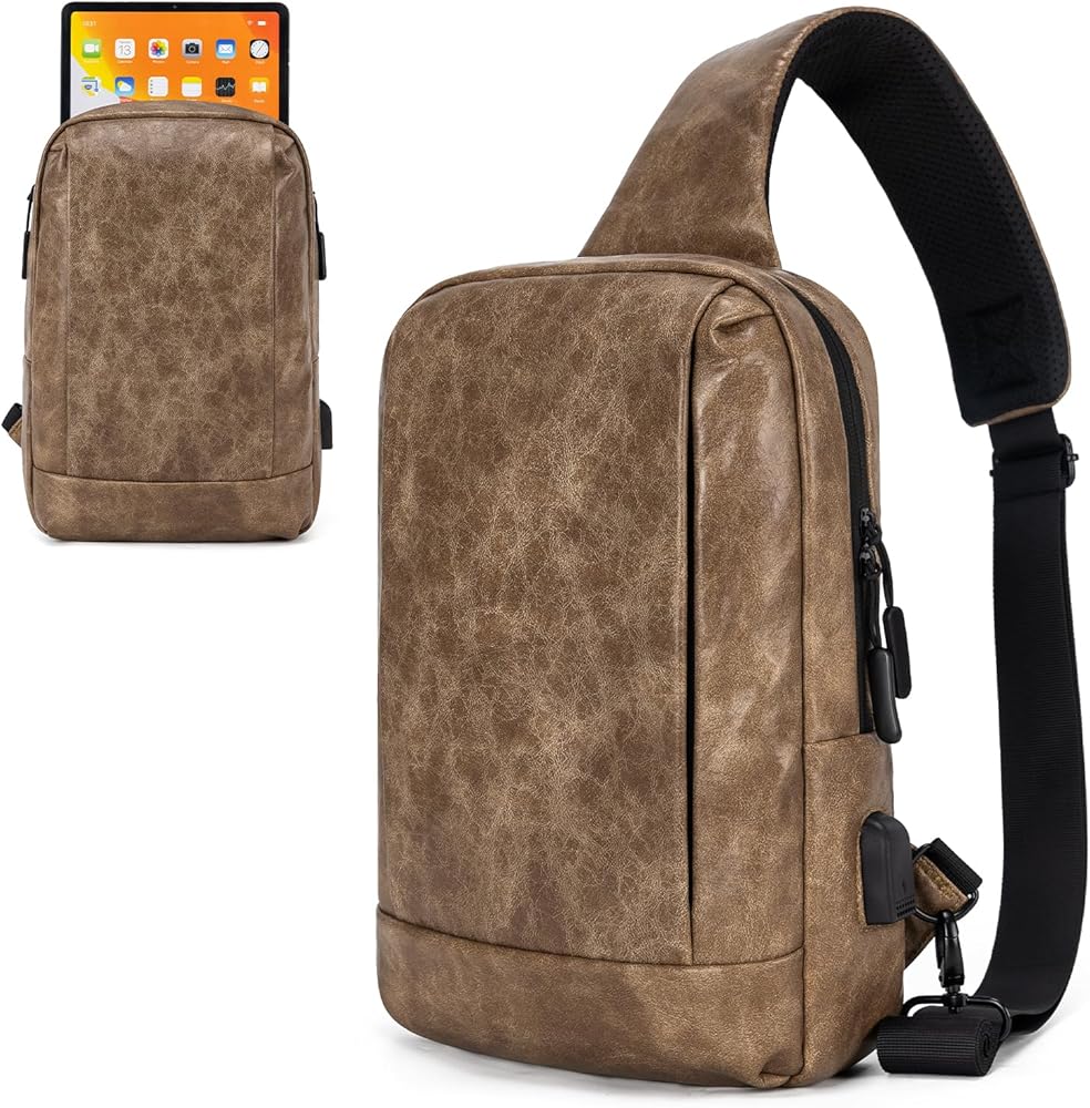 Multifunctional sling ipad bag: USB Charging port design(no Portable Charger),Built in USB cable.connect the automatic power supply and then connect the phone to the USB port with the USB cable you can easily charge the phone. multiple storage pockets both inside and out, to an interior wall wallet so you don't have to carry the extra weight of a wallet