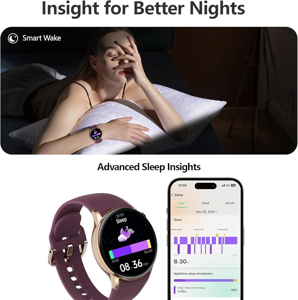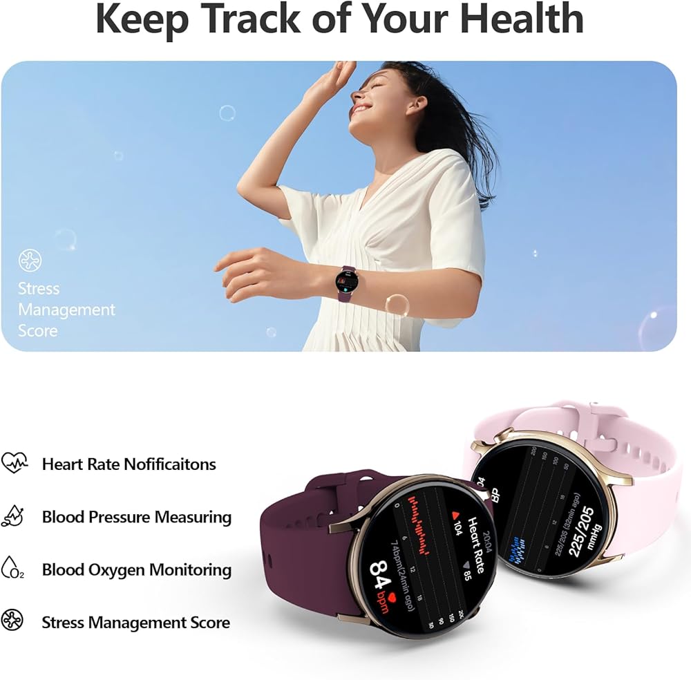 Advanced Health Tracking: This smartwatch offers all-day stress detecting, continuous heart rate monitoring, blood oxygen level tracking, blood pressure measuring and detailed nightly sleep analysis, help you to learn your well-being and live a healthier life. (Not intended for medical use)