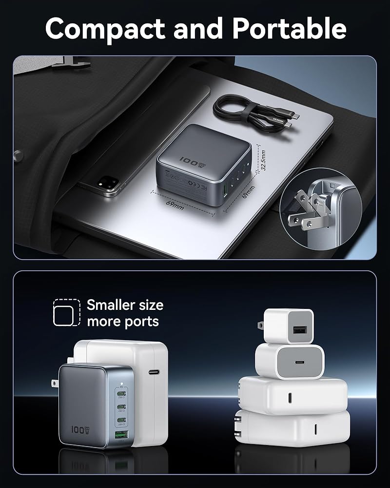 100W USB C Wall Charger Block, 4-Port PD3.1 GaN Foldable Compact PPS Fast Laptop Charger Power Adapter for MacBook Pro/Air, Dell XPS, iPhone 17/16 Pro, iPad Pro, Galaxy S25/S24, Steam Deck, and More