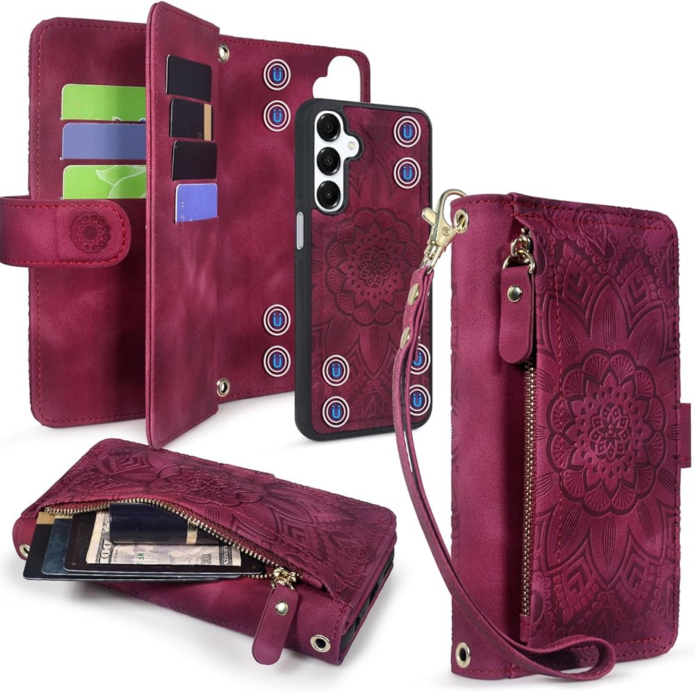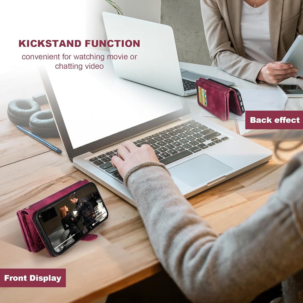 Removable Case---Removable magnetic back cover. Built-in magnets make the phone case stay on the wallet stable.Your phone can easily be taken out and held alone.