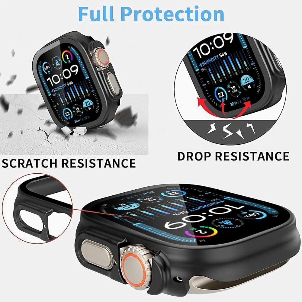 Overall protection: Designed for apple watch ultra 2 screen protector is made with anti-scratch hard pc and tempered glass, offering full protection for your watch against scratches, drops, and bumps.
