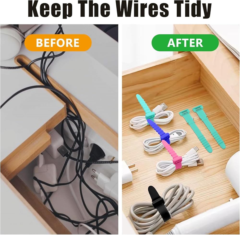 Wide Range of Use: These reusable silicone ties have multiple applications, such as classroom organization, cable management, wire management, tying down grocery bags, curtains, and other household items. They are also suitable for office supplies, travel essentials, purse accessories, and teacher must-haves.