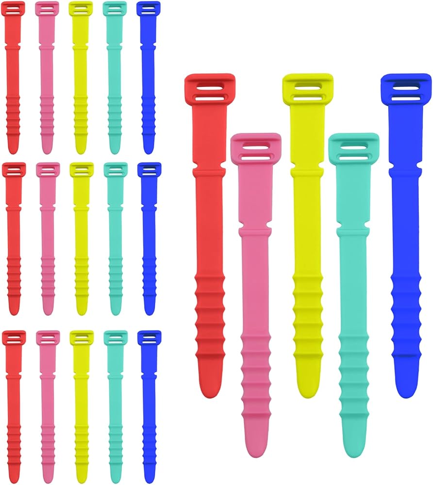 20pcs Silicone Cable Ties Reusable Zip Ties Multi Brighter Color Elastic Cord Organizer Wire Management Ties Straps Bundling and Fastening Cable for Home Office Table Desk Travel Essentials