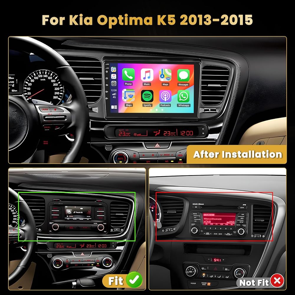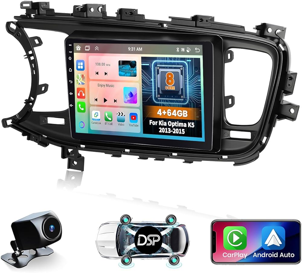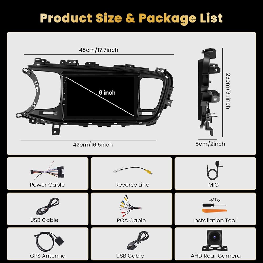 Radio Android Car Radio: مخصص لـ Kia Optima K5 2013 2014 2015. حزمة مدرجة في KIA Optima K5 Dash Kit ، سلك محدد ، قابس ولعب. (يرجى التأكد من أن شكل الإطار هو نفس الشكل القديم لسيارتك قبل الشراء). نظام التشغيل Android 13 ، والأداء العالي ، وذاكرة الوصول العشوائي 2GB و 64 جيجابايت من ROM ، يضمن التشغيل السلس والاستجابة الأسرع. مع شاشة 9 '' HD IPS , دعم الانقسام
