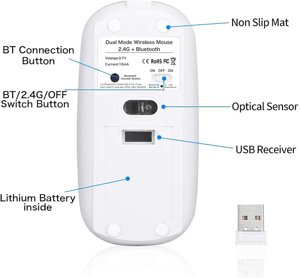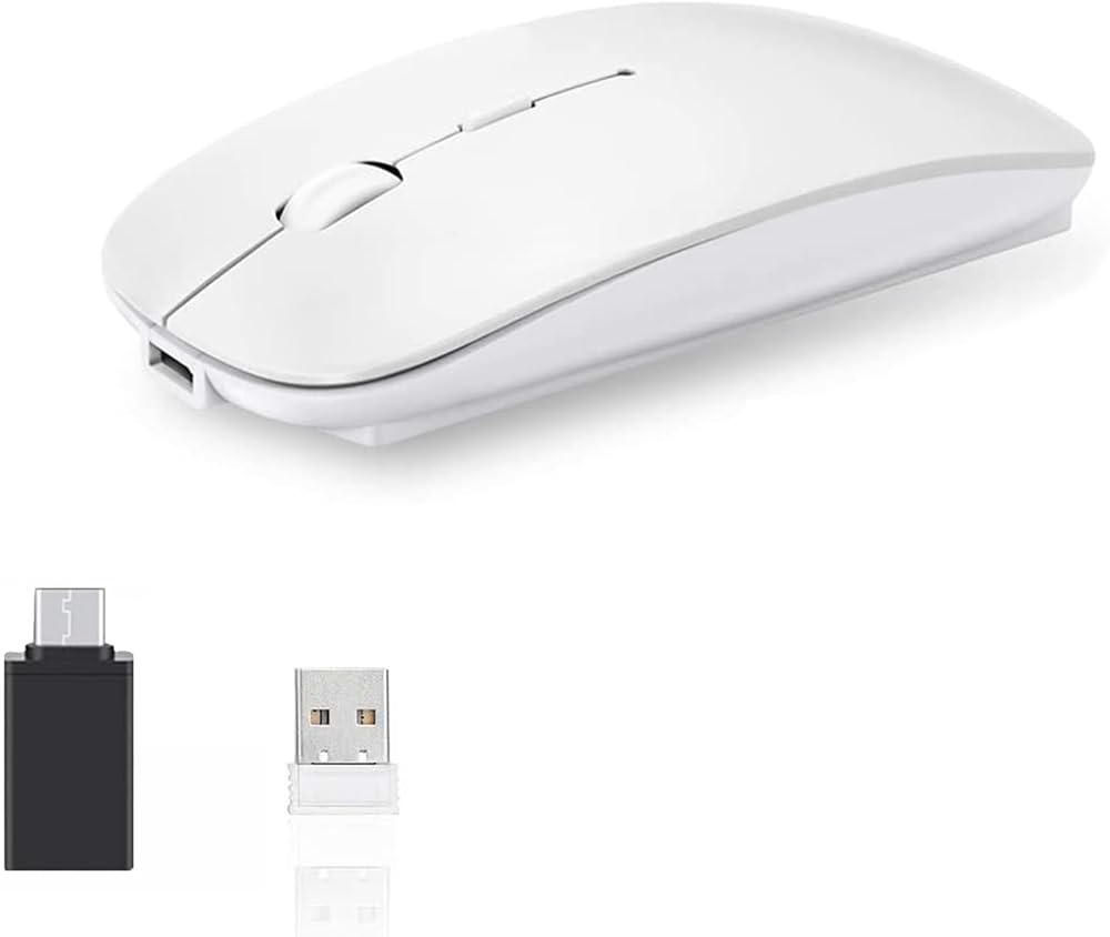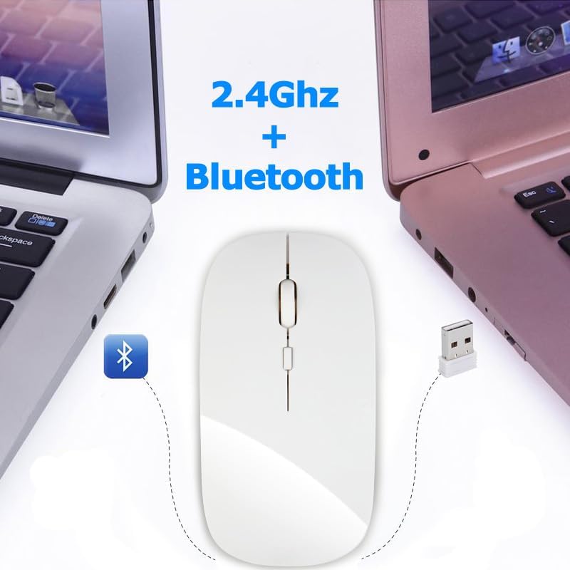 Bluetooth Wireless Dual Mode Mouse,Rechargeable Mouse for Mac/Windows/Android Tablet,Bluetooth Wireless Mouse for iPad/Mac/Laptop/PC/Computer,2.4G Wireless Mouse for Desktop/Notebook/Computer(White)