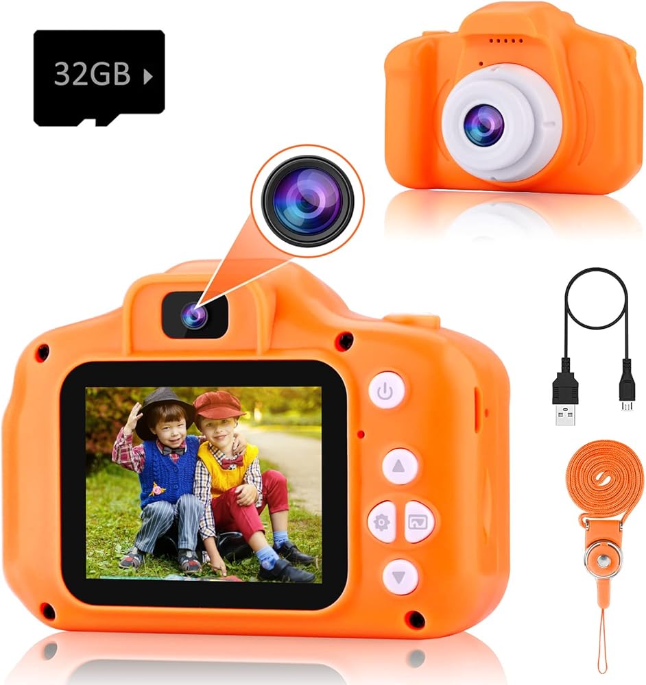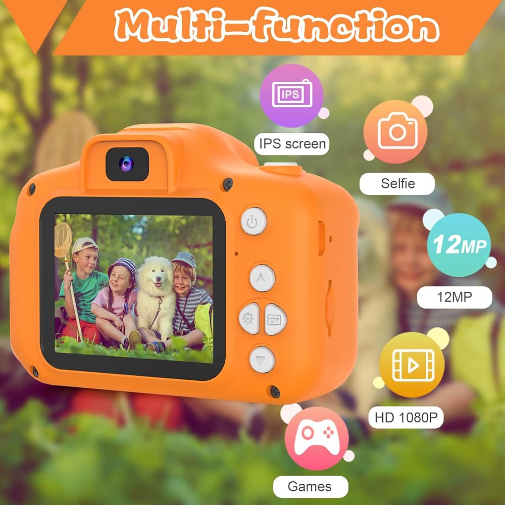 Multi-functional Camera for Kids - The toy camera supports burst shooting, voice recording, time-lapse and 4x Zoom. Built-in puzzle games bring kids more fun.The kids recording camera includes 32GB SD card.