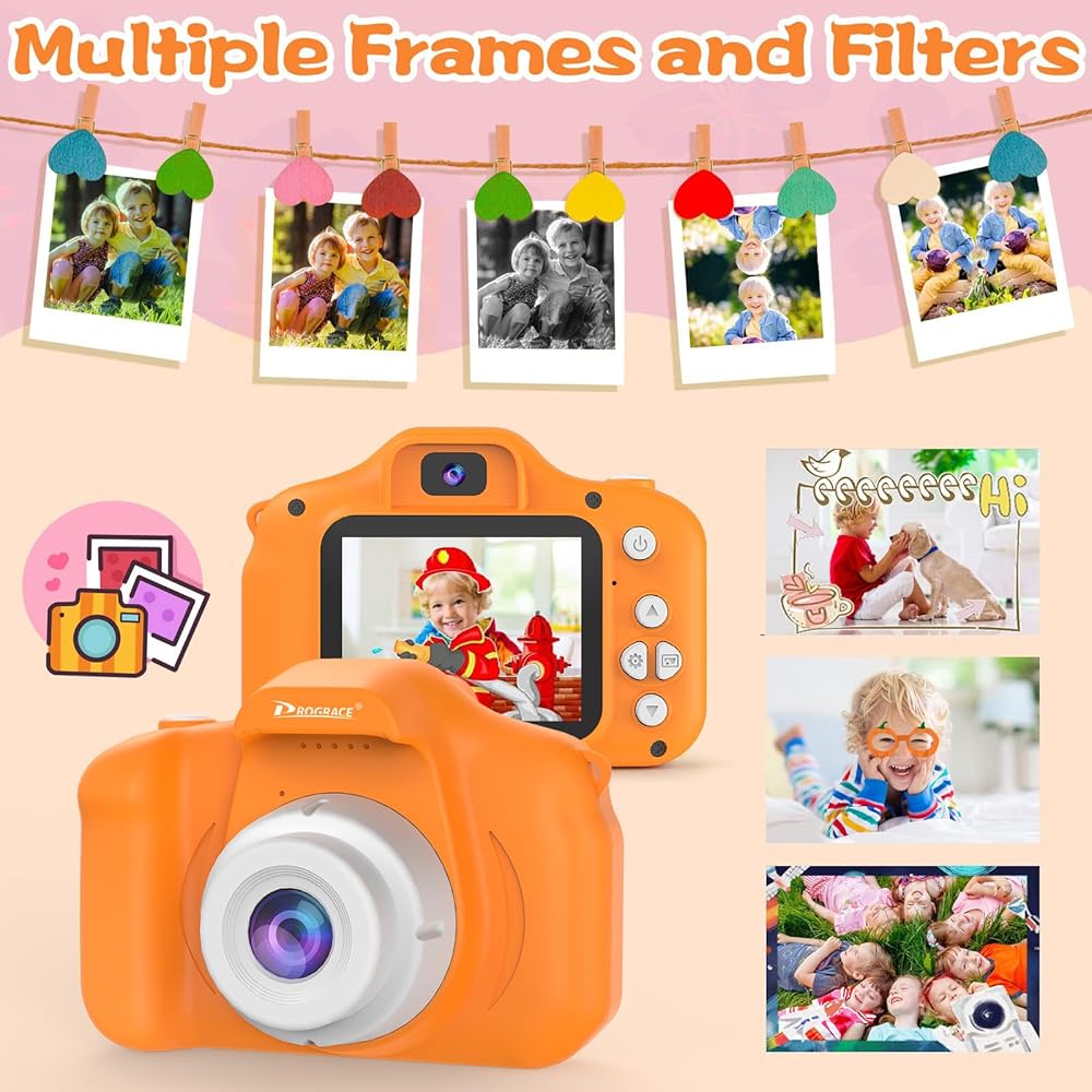 PROGRACE Kids Camera for Girls Ages 3-8 - Easy to Use Toddler Digital Video Camera with 28 Fun Frames & Selfie, Christmas Birthday Valentines Day Gifts for 3 4 5 6 7 8 Years Old Girls, Orange