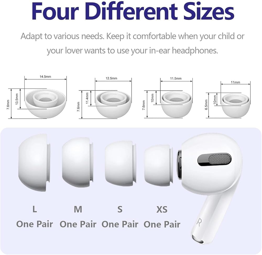 Replacement Ear Tips for Apple AirPods Pro and AirPods Pro 2 with Noise Reduction Hole, 4 Pairs (XS/S/M/L) Built-in Dust Mesh USB Charging Case, with 6 PCS of Alcohol Pads