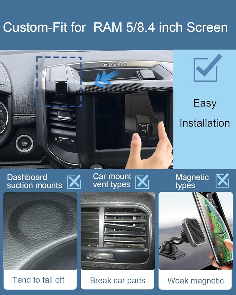 【Dodge RAM Accessories】Custom-Fit for Dodge RAM 2019-present Only supports 5 and 8.4 inch screen ( 2024 Dodge RAM / 2023 Dodge RAM / 2022 Dodge RAM / 2021 Dodge RAM / 2020 Dodge RAM / 2019 Dodge RAM ) Note: Please check the shape of the mounting position in the photo before ordering.