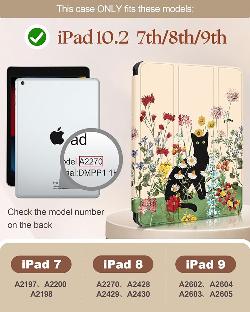 Buleens for iPad 9th/8th/7th Generation Case 10.2 Inch - Case for iPad 9th Gen with Pen Holder Cute Aesthetic Auto Wake/Sleep Trifold Funda para for Apple 9th/8th/7th Gen A2602 A2270, Flower Cats