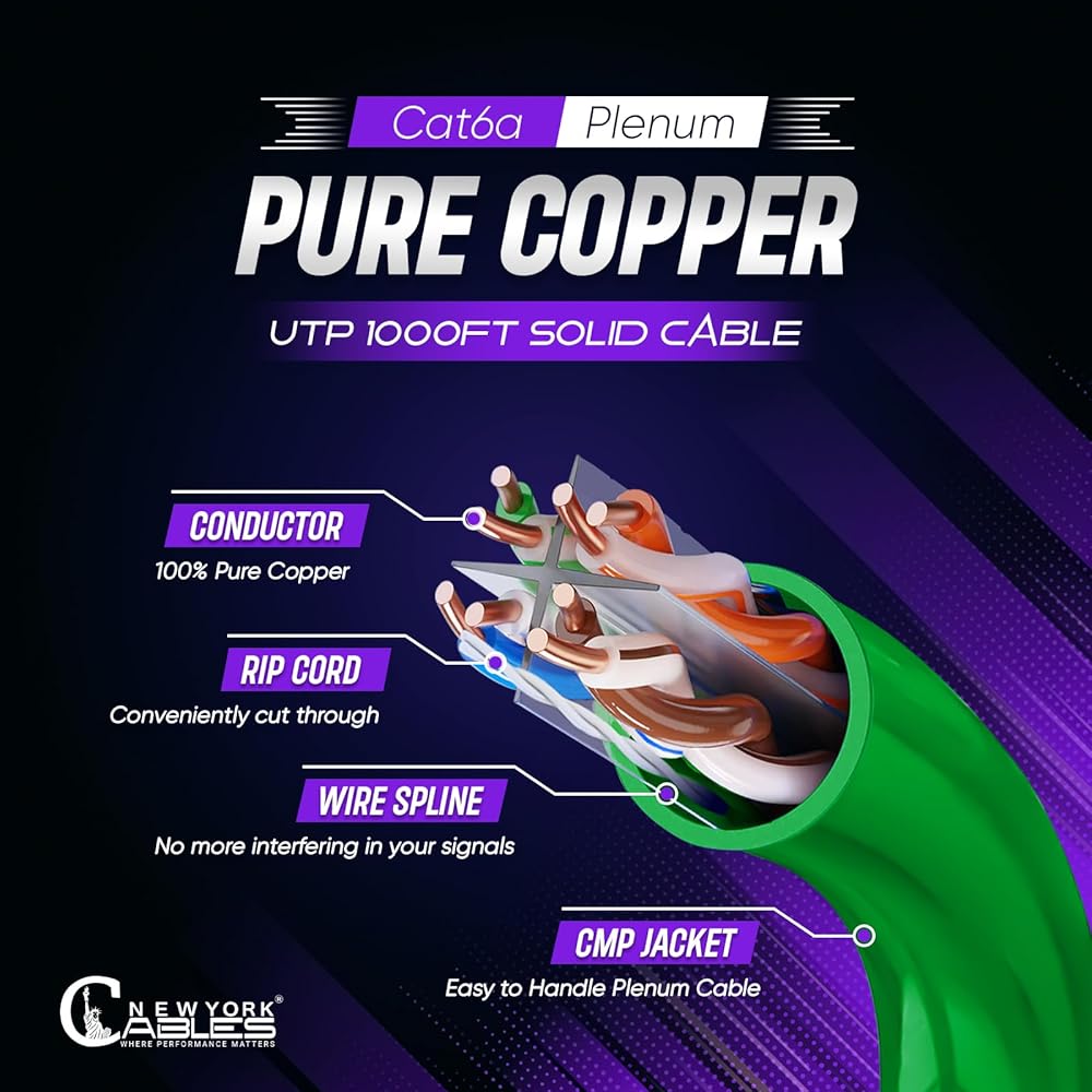 HIGH-SPEED PERFORMANCE: Experience lightning-fast networking and seamless gaming with our Cat6a ethernet cable. Our cat6a plenum 1000ft is Designed to support speeds up to 10GB, it ensures smooth data transfer and low latency for optimal performance.