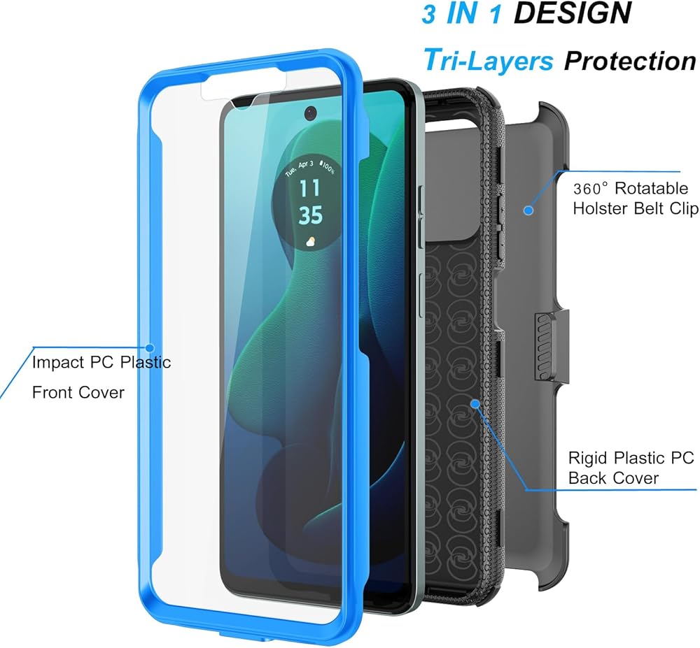 ✦Njjex Heavy Duty Defender Combo Tank Clip Belt Protective Case for Motorola Moto G 5G 2024, Perfectly Fit AT&T Sprint Verizon T-mobile Tracfone, MetroPCS, Virgin, Boost International unlocked Cricket U.S. Cellular Straight Talk All Carriers.