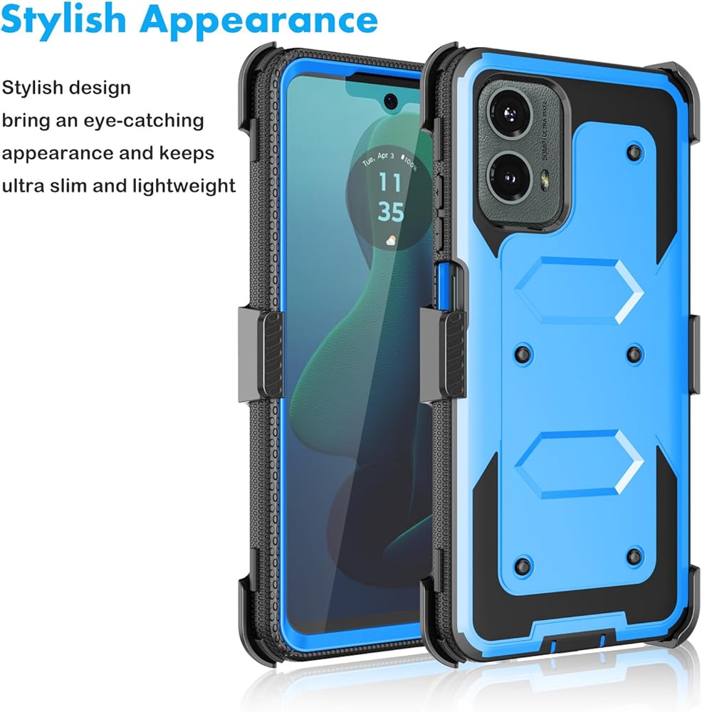 Njjex for Moto G 5G 2024 Case, for Motorola Moto G 5G 2024 Phone Holster Case, [Nbeck] Shockproof Heavy Duty Built-in Screen Protector Rugged Swivel Belt Clip Holster Kickstand Hard Cover [Blue]