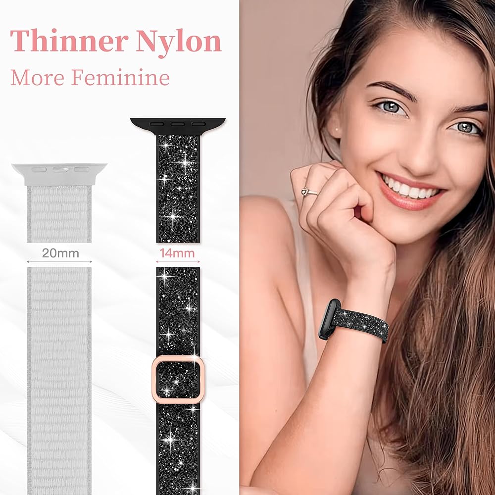 【Slim Glitter Band】This Sparkly bling apple watch band is full of exquisite and fashionable charm. Its surface adopts a fine glitter design, like the twinkling stars in the night. With its slim appearance, it highlights the perfect lines of your wrist and fits your gentle temperament. The delicate glitter enhances the sense of fashion and makes every action a display of beauty