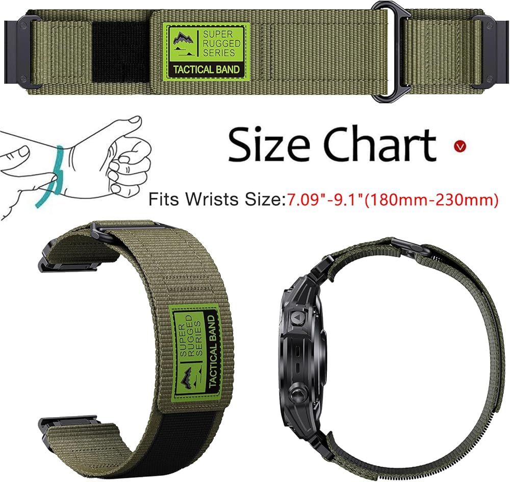 -Compatible Models, QuickFit 26mm watch band Compatible with Garmin Fenix 8 51mm, epix Pro 51mm, Fenix 7X Sapphire Solar / Fenix 7X Solar, Instinct 2X, Tactix 7 Pro,Fenix 6X Pro / Fenix 6X Sapphire Solar ,Fenix 5X /5X Plus,D2 Charlie/D2 Delta PX,Enduro / Enduro 2 / Enduro 3,Descent Mk1 / Descent Mk2i / Descent Mk2 ,Tactix Delta / Tactix Charlie / Tactix Bravo, Quatix 3 ,Fenix 3/Fenix 3 HR . Only watch band, Smartwatch NOT included,