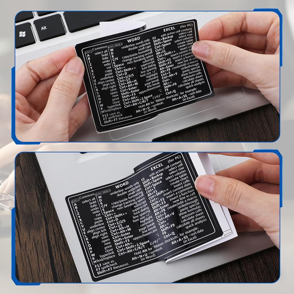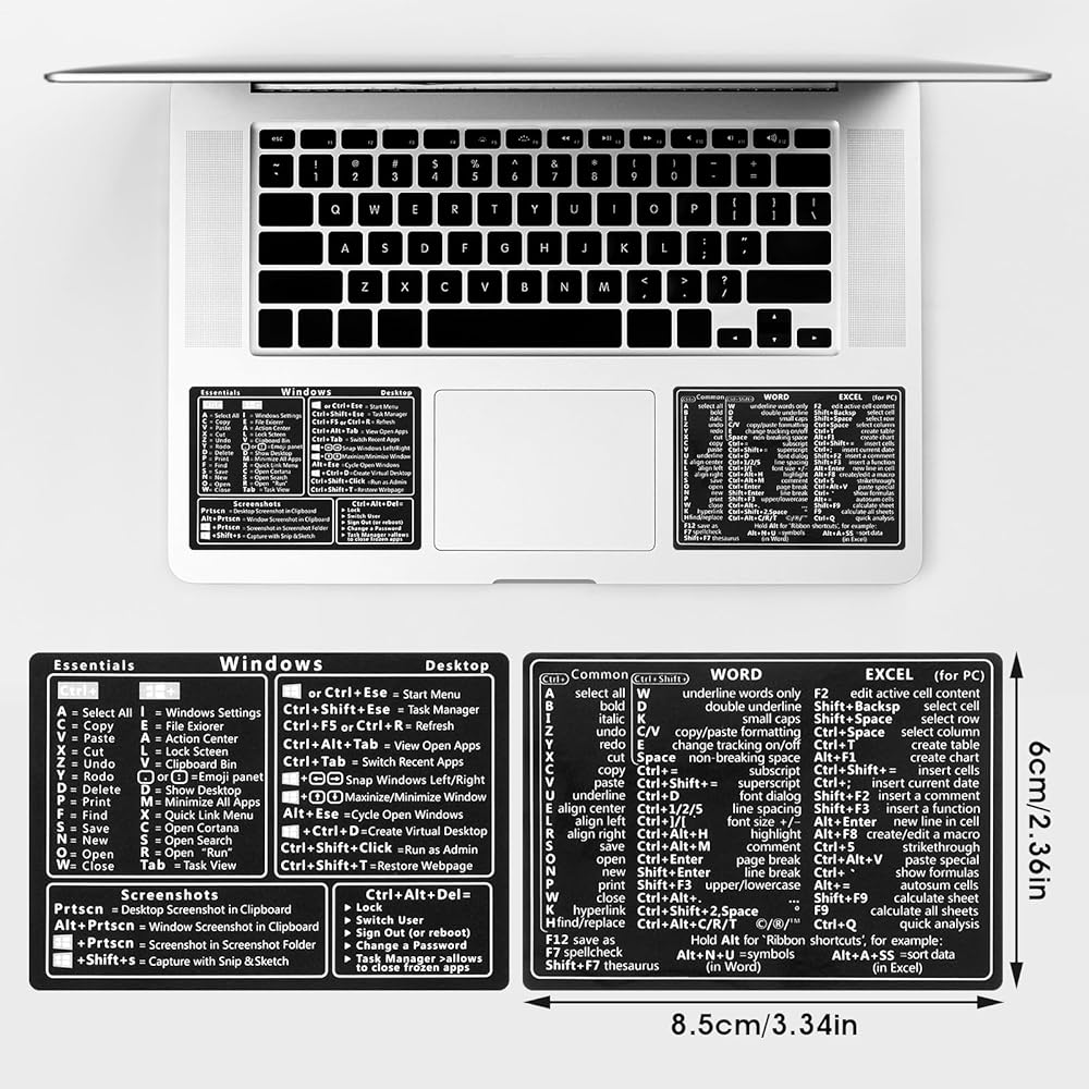 【Compatible】Measuring 3.34 x 2.36 inches, these Word/Excel shortcuts stickers are designed for 14" laptops and smaller, fitting most brands and desktops running various operating systems.