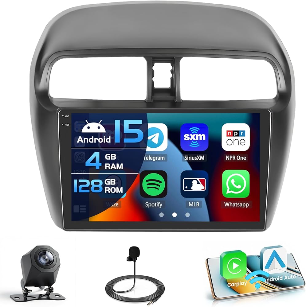 4G 128G for Mitsubishi Mirage 2012-2022 Radio CarPlay 9" Incell Touchscreen Car Stereo Android 15 Android Auto Bluetooth 5.0 GPS WiFi 15UI Backup Camera
