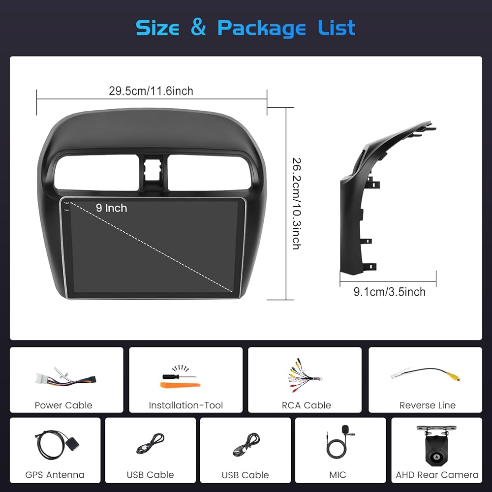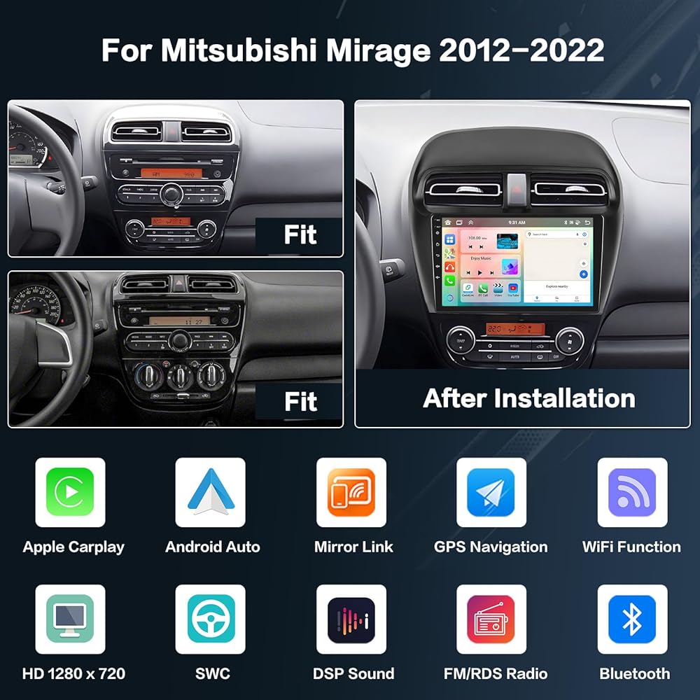 Applicable Models & Years: This upgraded replacement dash kit is for Mitsubishi Mirage 2012 2013 2014 2015 2016 2017 2018 2019 2020 2021 2022. The stereo comes with an in-dash head unit, wiring harness cables and frame panel. Please check if the power cable port on the detail page matches your original car before purchasing