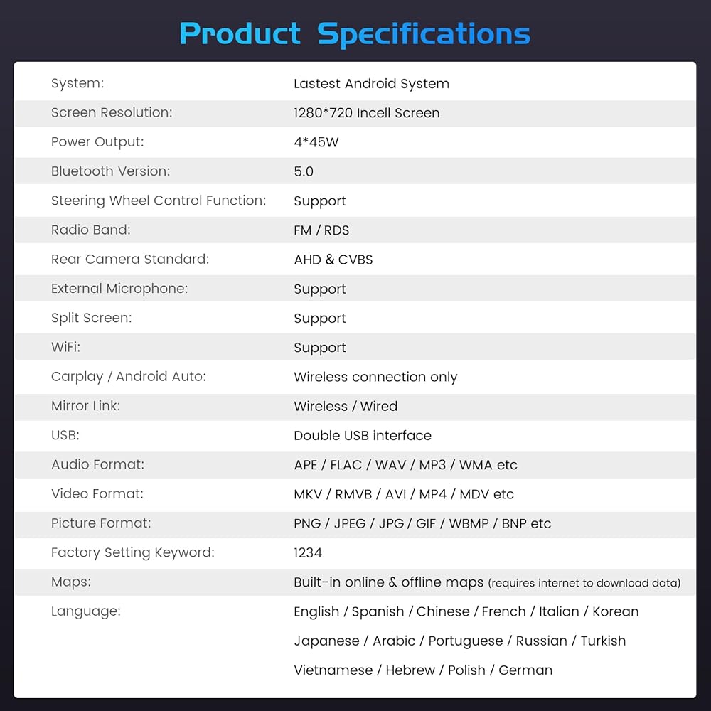 Wireless CarPlay & Android Auto: Built-in wireless and wired CarPlay and Android Auto. (For Samsung, some cannot use Android Auto and Mirror Link; For Huawei, some cannot use Android Auto). For mitsubishi mirage carplay radio able to realize voice control and access to cell phone function via Bluetooth or the phone's original USB cable, including music, navigation, calls, messages and more