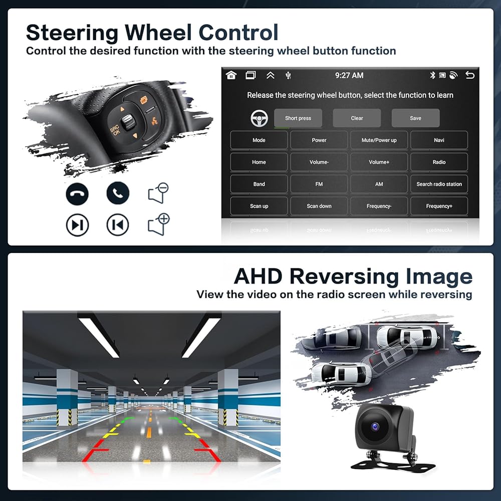 AHD Backup Camera & Steering Learn: The waterproof AHD camera is equipped to display the rear camera screen automatically when the reverse gear is engaged, providing a clear image day or night. For mitsubishi mirage android auto radio can be controlled using the steering wheel, allowing for quick reactions, changes and play the radio