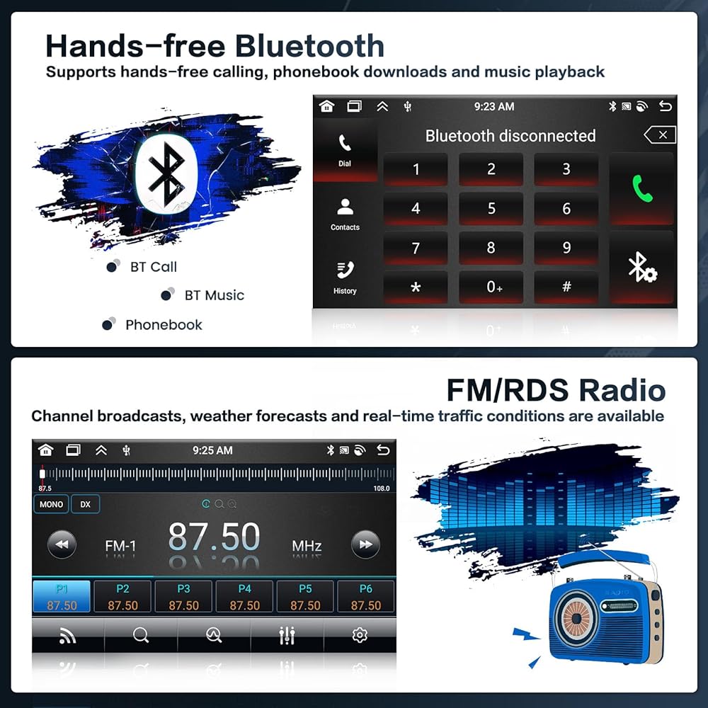 Built-in Bluetooth & FM/RDS Radio: For mitsubishi mirage bluetooth stereo built-in Bluetooth 4.2 can be realized to play music and hands-free calls, phonebook download, etc. With FM/RDS radio, you can listen to music, get real-time weather forecasts, traffic updates, and news while driving. You can save up to 18 of your favourite radio stations