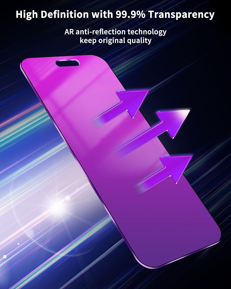 【Briliant Color】Unlike the black privacy screen protector, our color will change to Purple at different angles,The stronger light indoor or outdoor, the brighter privacy screen protector color will present. making your phone color changeable, cool and unique.