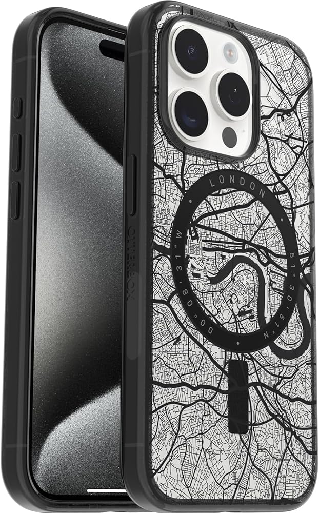 The OtterBox Clear case with colorful grip edge iPhone 15 case lets your personal style shine through. This minimalist iPhone case protects your phone and works seamlessly with MagSafe chargers and stands.