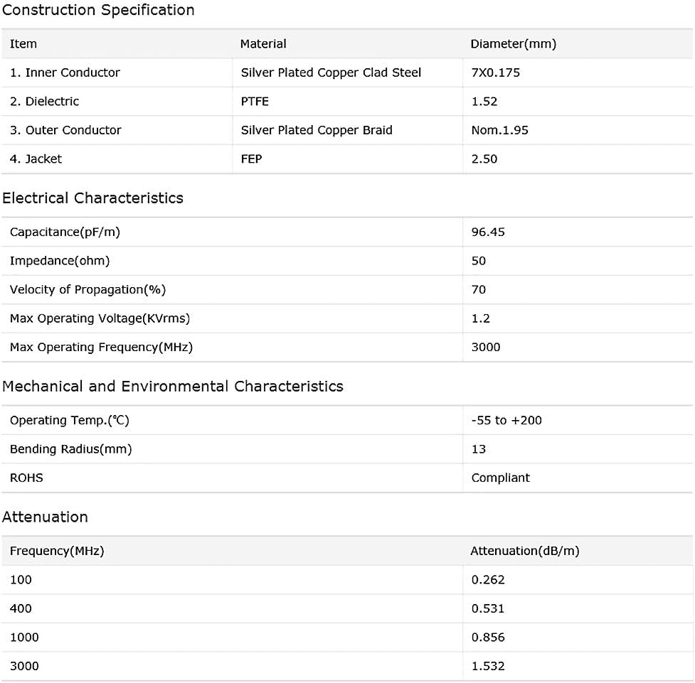Connector: SMA Male 50 Ohm Connector; Connector: SMA Male 50 Ohm Connector; Cable: RG316 Coaxial Cable;