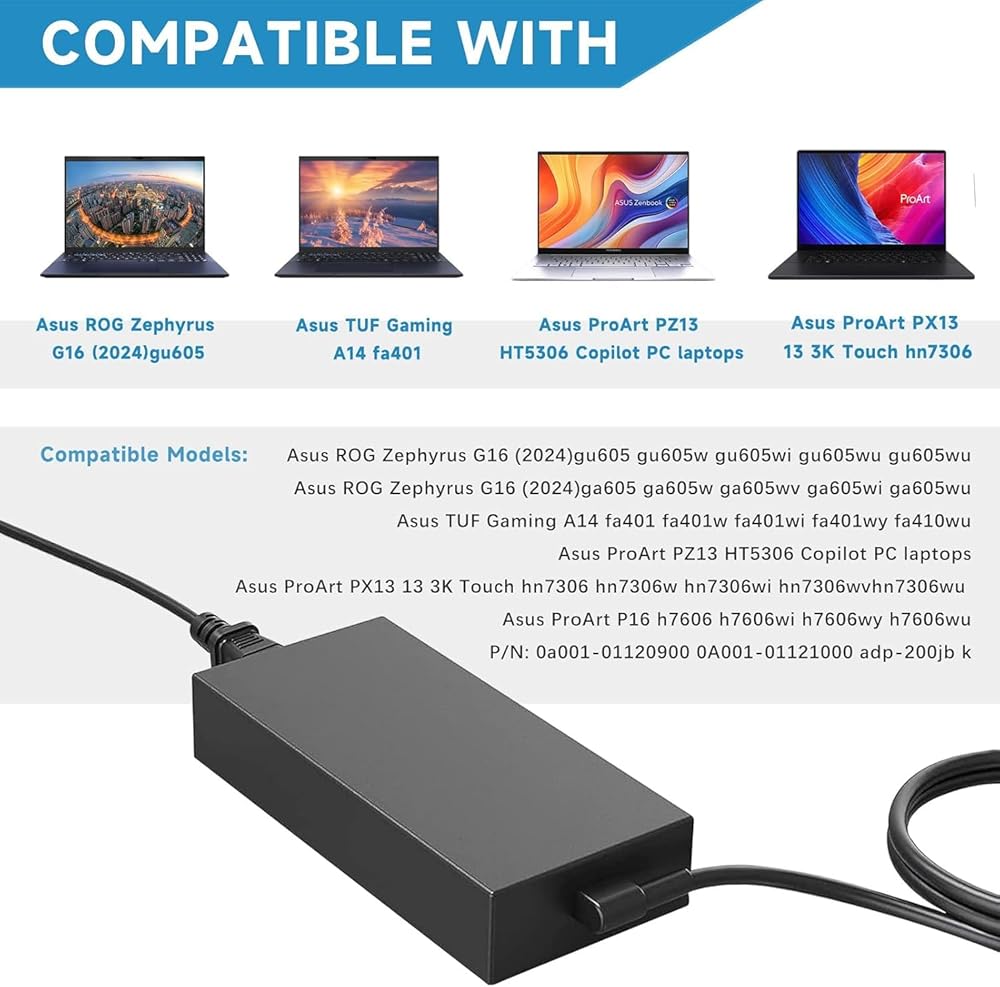 Laptop Charger Fit for Asus TUF A15 FA506,A15 FA506IV,A17 FA706,FA506IH-AL066T,FA506IH-B0027T,FA506IV-AL038T,FA506IV-BR7N12,Asus Zenbook Pro UX581GV, UX581LV,Part Numbers: OA001-00064600,0A001-00064700,90XB04GN-MPW010,90XB04GN-MPW020, 90XB04GN-MPW030,90XB04GN-MPW040, 90XB04GN-MPWO50,90XB04GN-MPW060,AC230W-AS196037,AD230-00E,ADP-230EBT,ADP-230EBT,ADP-230G AD,ADP-230GB B