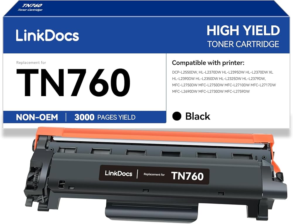 LinkDocs TN760 High Yield Toner Cartridge Replacement for Brother TN-760 TN730 to Use with HL-L2350DW HL-L2395DW HL-L2390DW HL-L2370DW MFC-L2750DW MFC-L2710DW DCP-L2550DW Printer