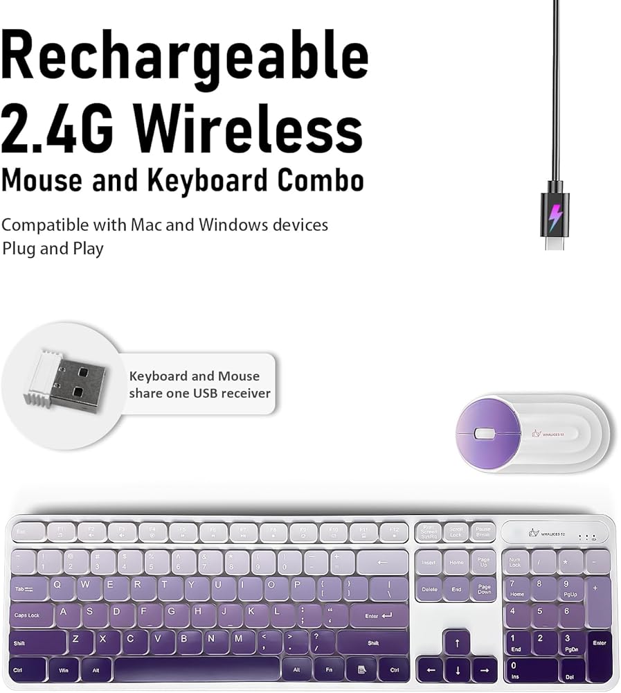 Whalices 52 Rechargeable Wireless Keyboard and Mouse Combo
