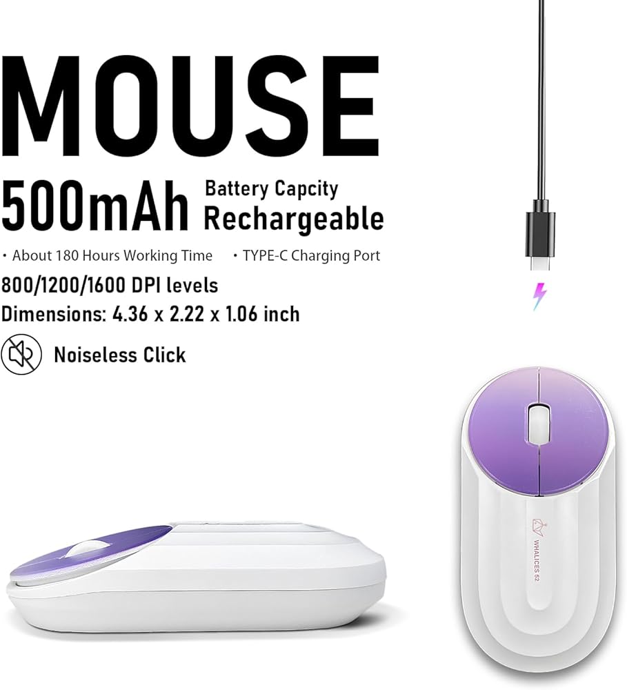 【 Wireless Keyboard and Mouse Bundle Fashion & Colorful 】 Rechargeable wireless keyboard and mouse combo set with full-sized 104 keys keyboard and colorful compact design. Keyboard with full-size keys, arrow keys, number pad, and shortcuts; Ambidextrous mouse is comfortable for both left and right handed users and compatible with 800/1200/1600 DPI levels; Keyboard Dimensions: 17.2 x 4.94 x 1.16 inch; Mouse Dimensions: 4.36 x 2.22 x 1.06 inch