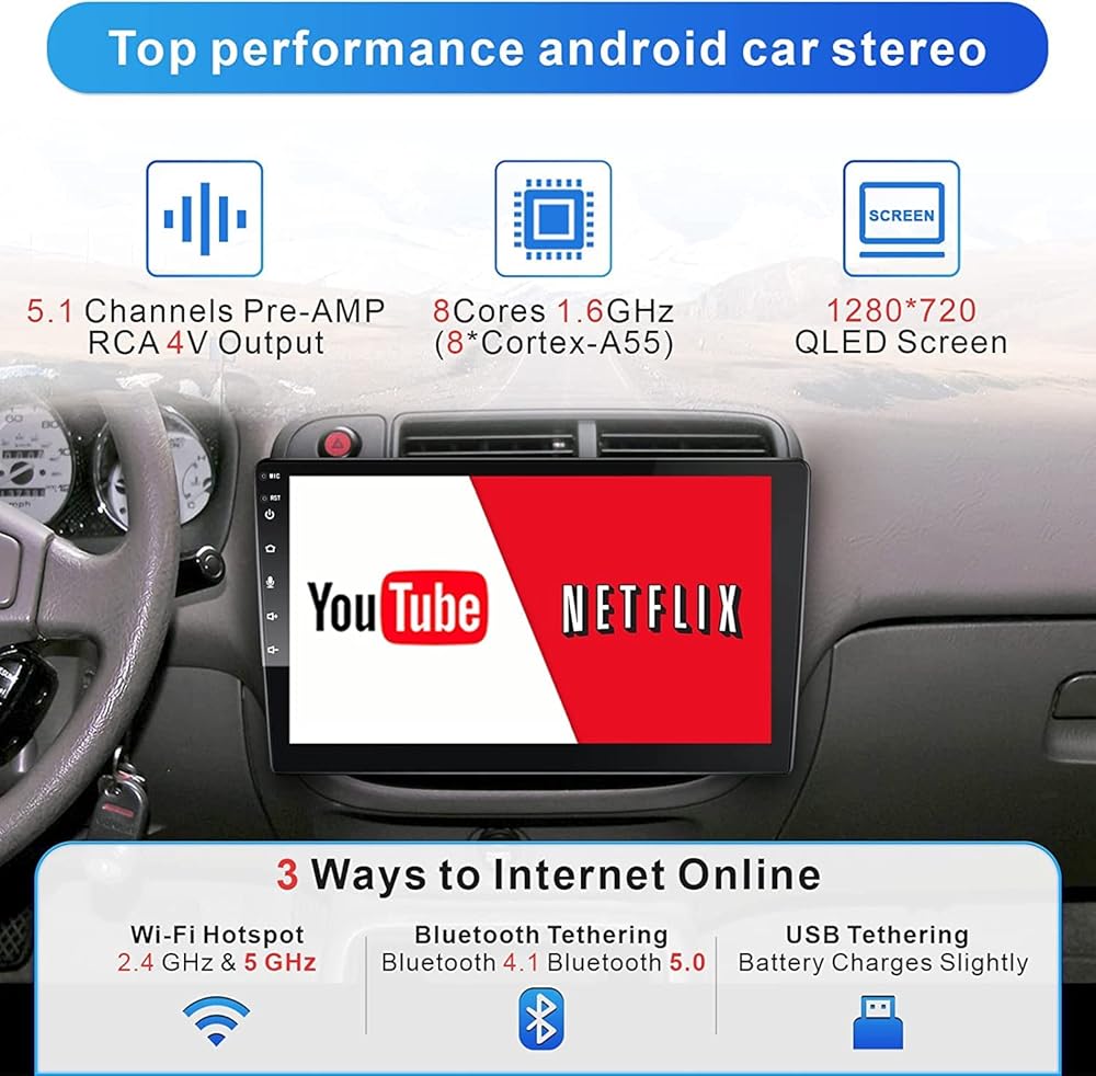 [ 10 Inch Stereo Touch Screen Vehicle Fit ] - 10 inch single din touchscreen car stereo is universal single din, Length:150M(6inch), width:180mm(7inch), height:50mm(2inch), 10 inch touch screen car stereo can fit most standard single din openings. Some cars need buy extra wiring harness/adapter, frame dash kit, radio antenna adapter, canbus decoder to make our 10.1 android car stereo well fit your car, this available from Metra, PAC, Scosche