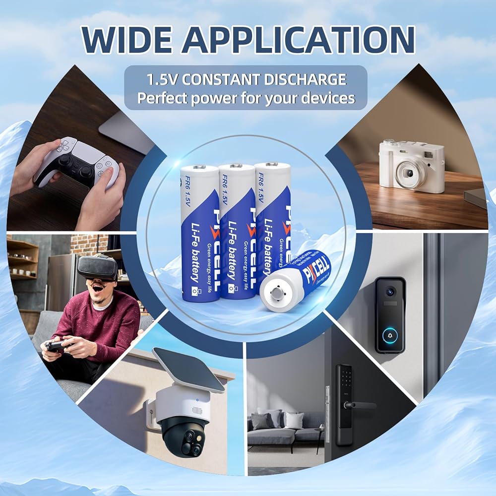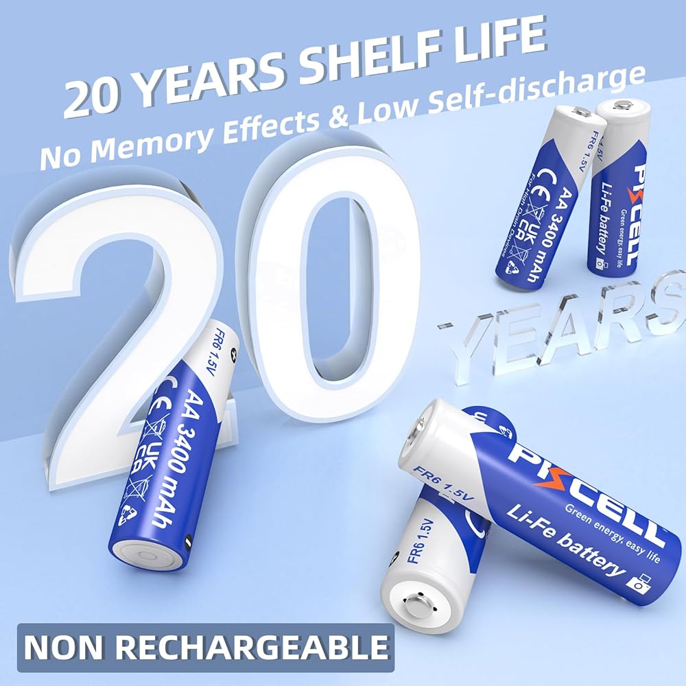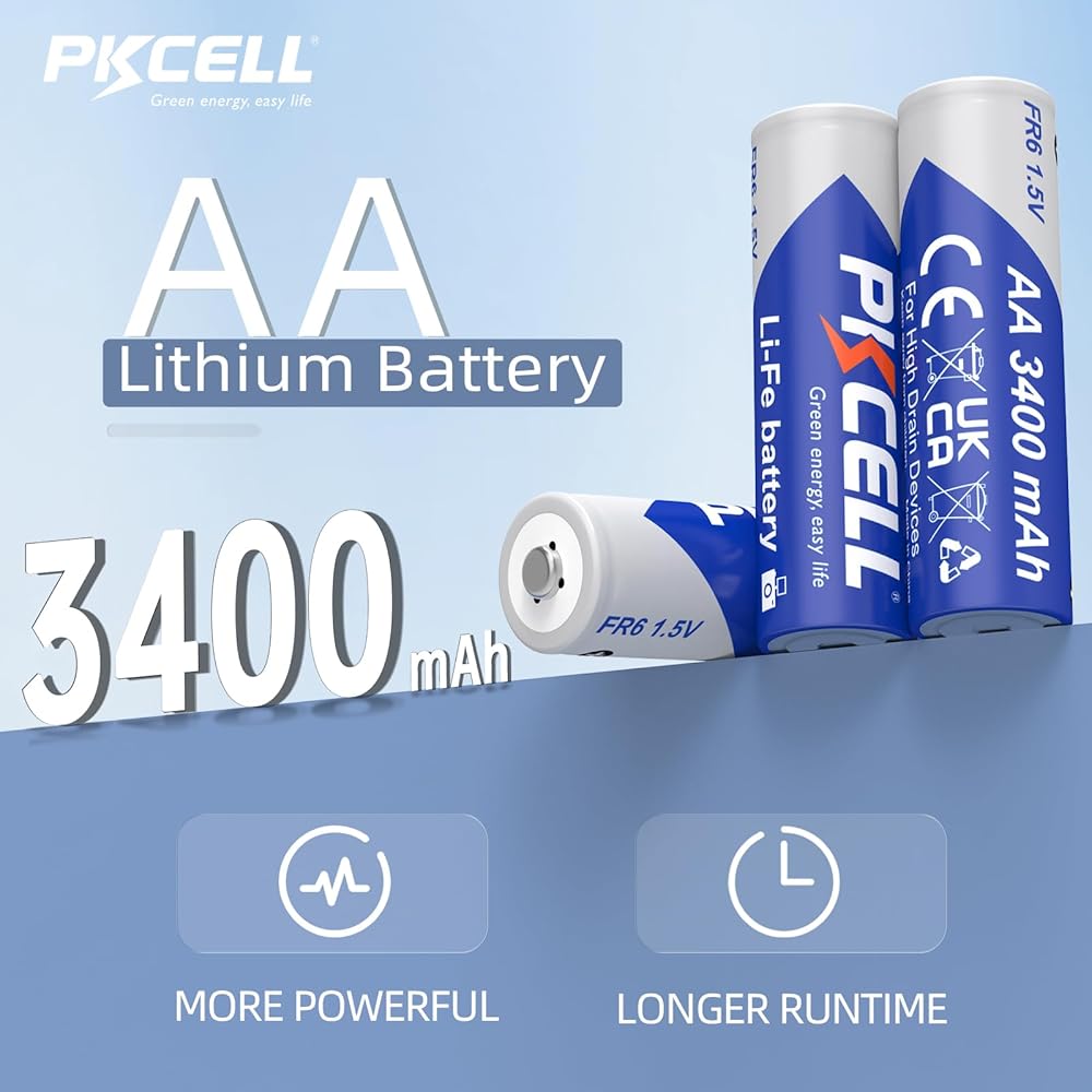 High Capacity: PKCELL provides 3400mAh lithium aa batteries, which keep 1.5v constant discharge and have 100% of its capacity available(no memory effects), perfect to power your electronic devices.