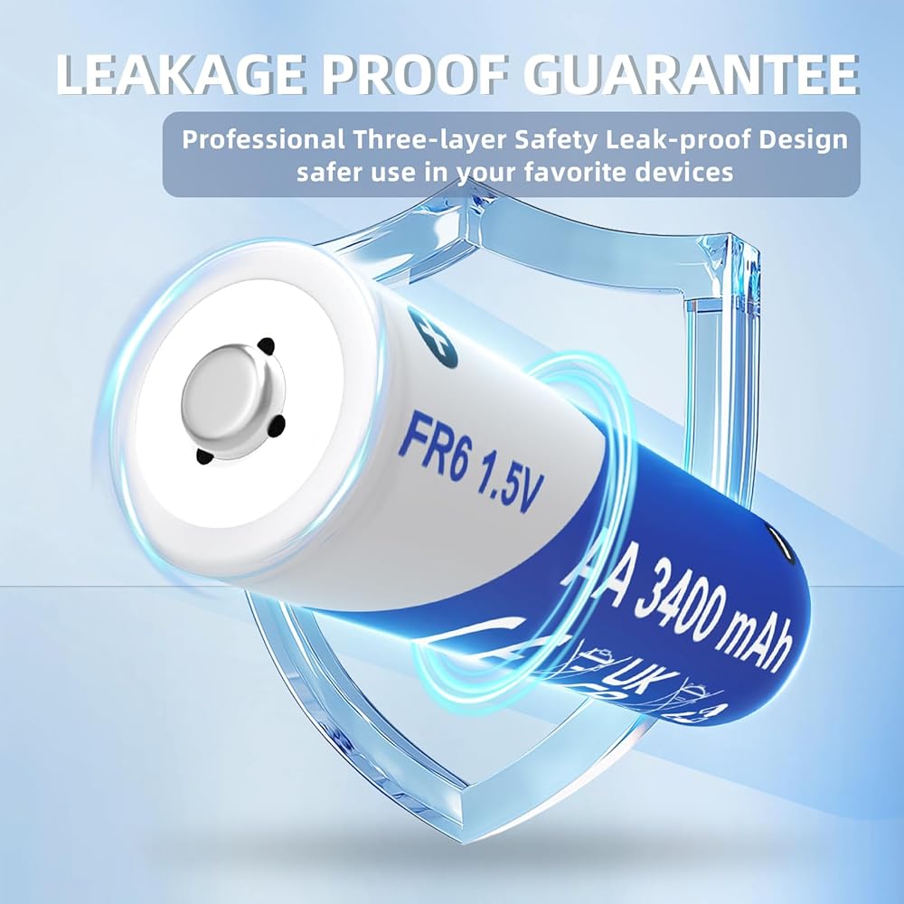 No Leakage & More Safety: Three-layer safety and leak-proof design applied by these aa size batteries can effectively prevent liquid from leaking.