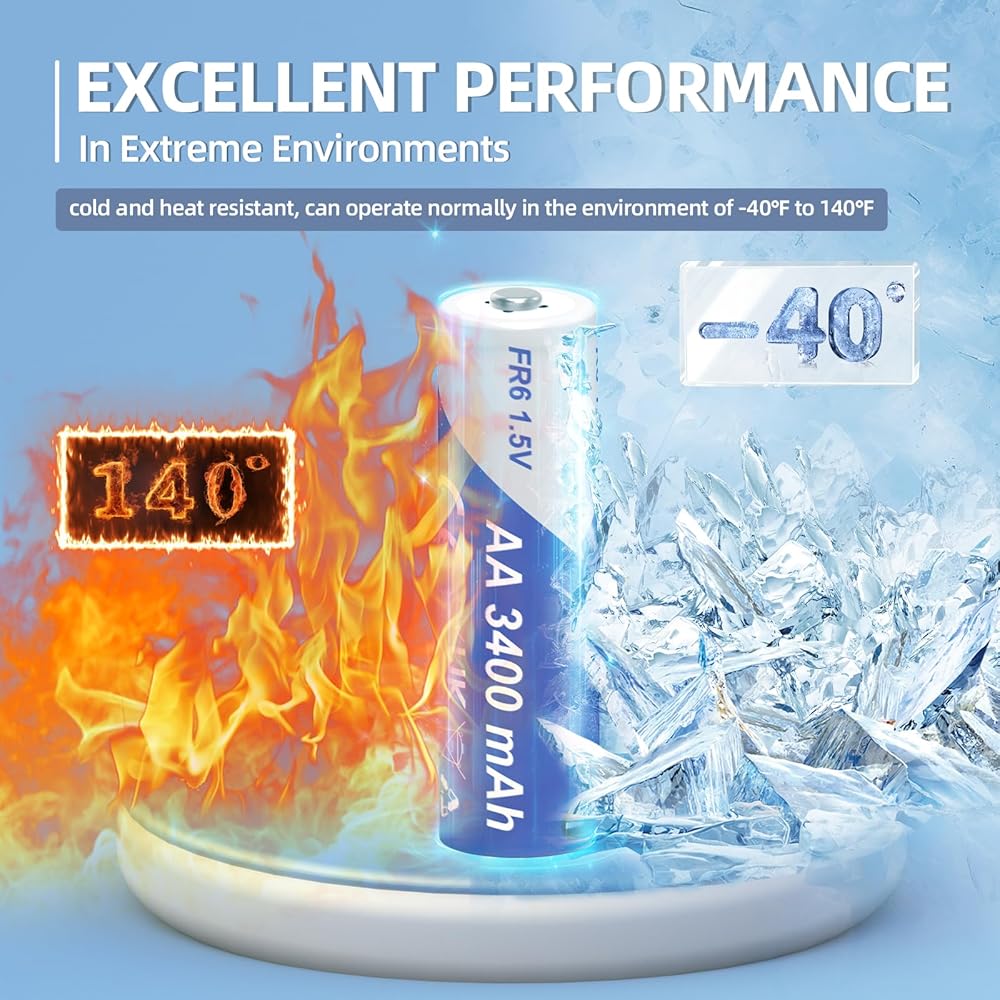 High Efficiency : Our AA lithium batteries can be stored for up to 10 years, and the batteries will be as fresh as when they left the factory. Compared with alkaline batteries, lithium batteries have higher energy density, which can save you a lot of money.