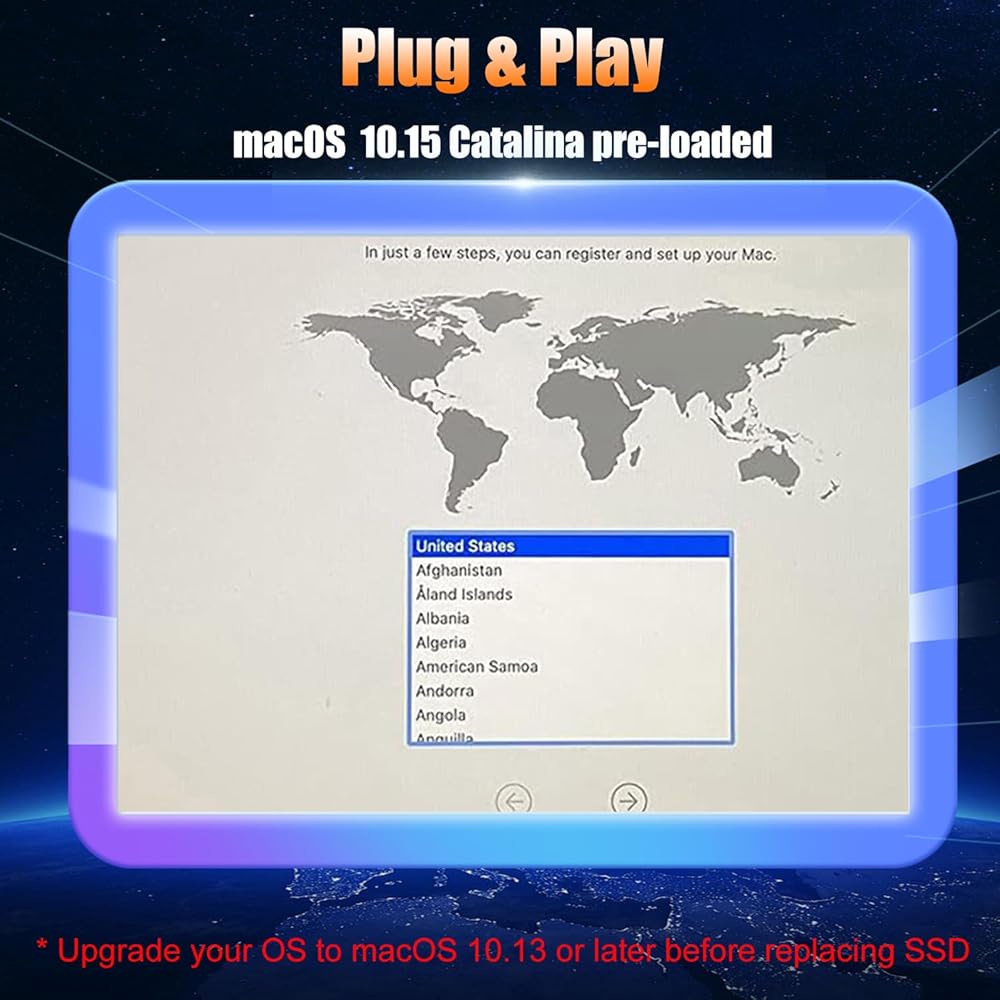 * 1 SSD drive pre-installed with macOS. Plug and play. No need to worry about installation issues and downloading a new operating system.