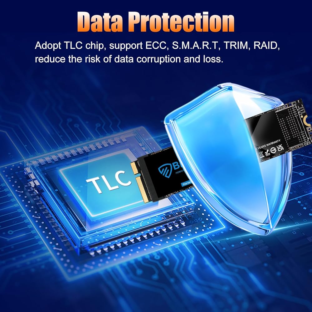 This internal ssd for macbook replacement use nvme pcie 3.0 tech, 3D TLC NAND flash and premium components, performing up to 2250 MB/S for read and 1850 MB/S for write.